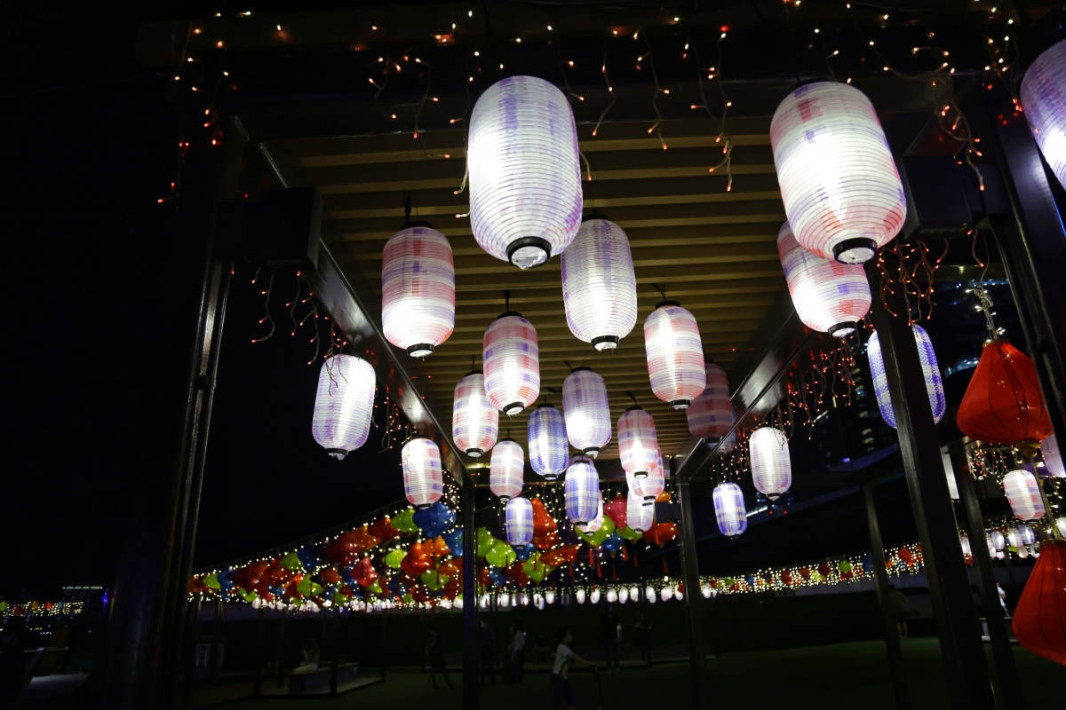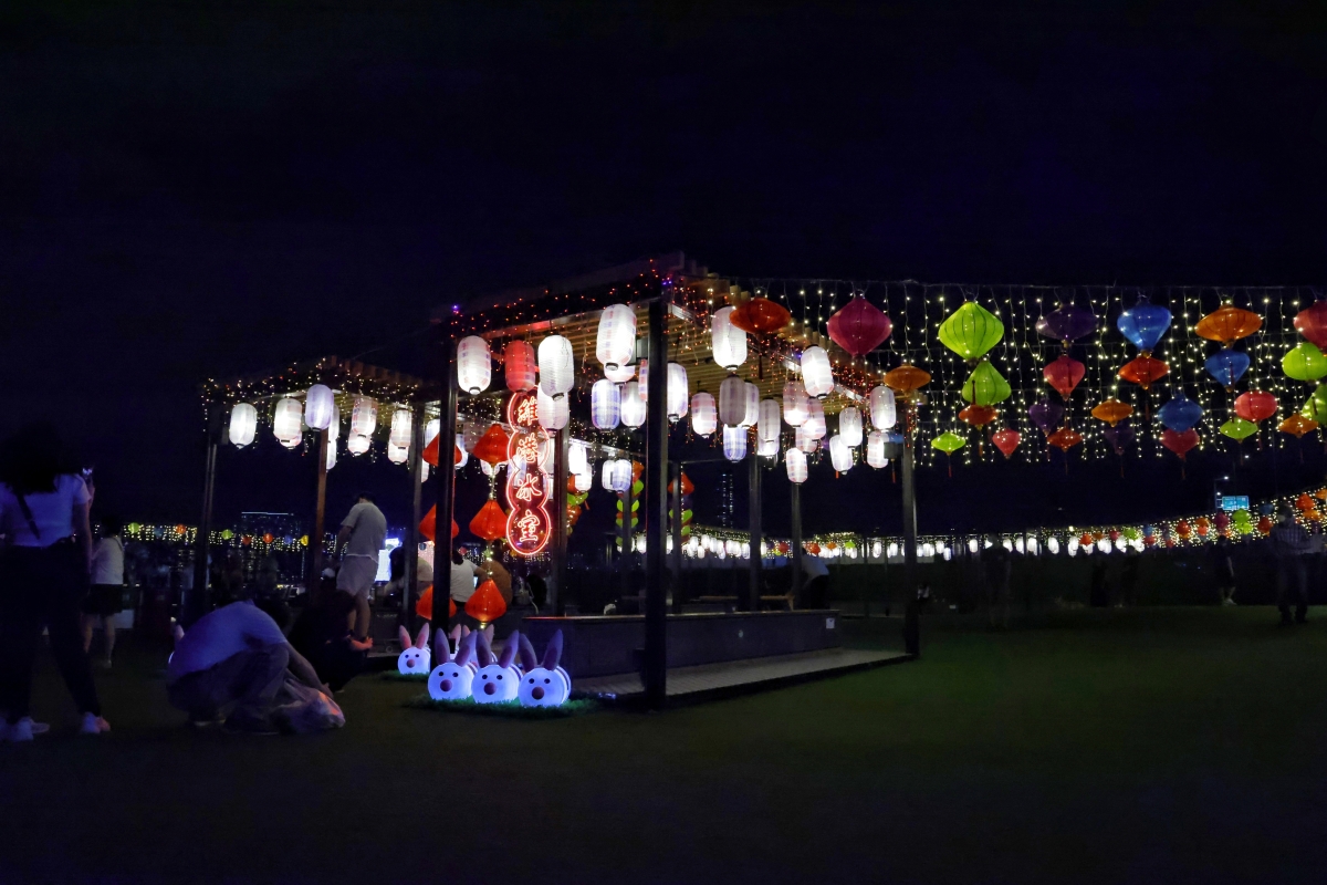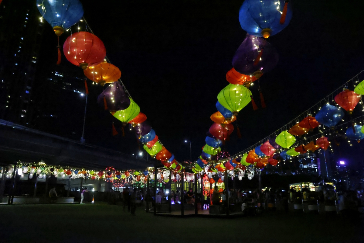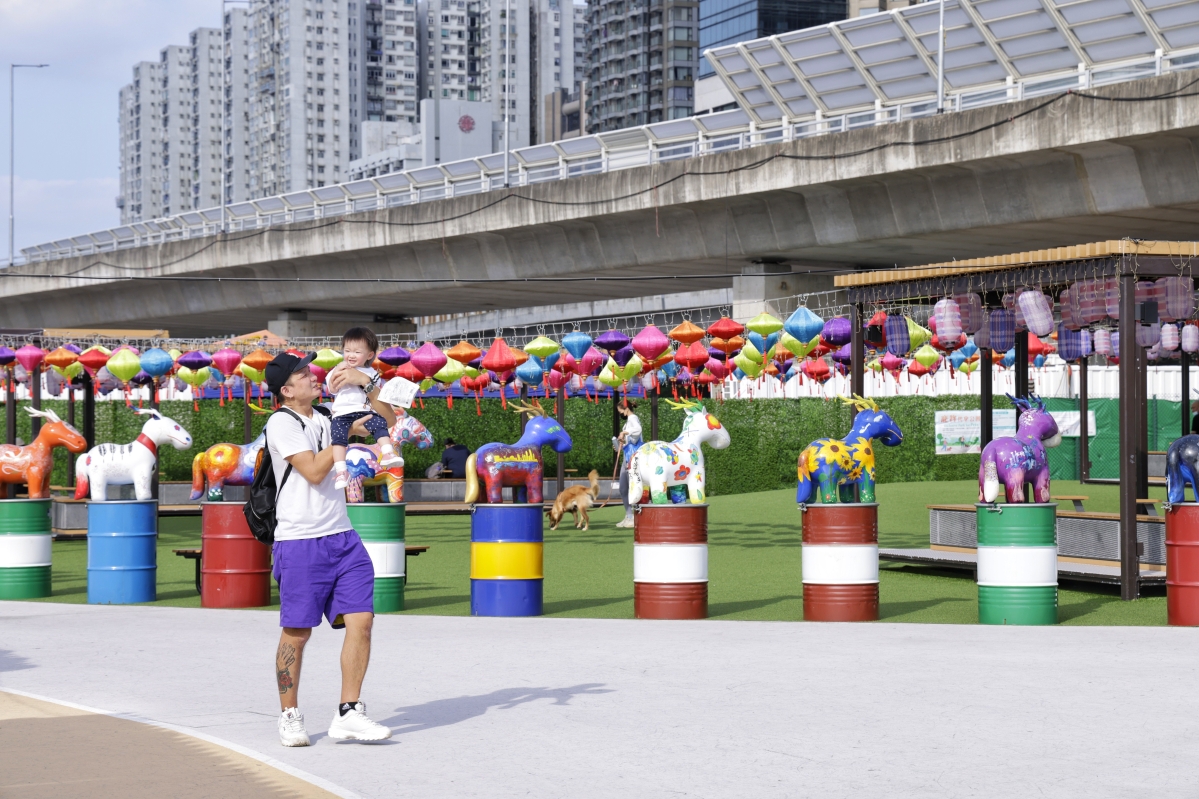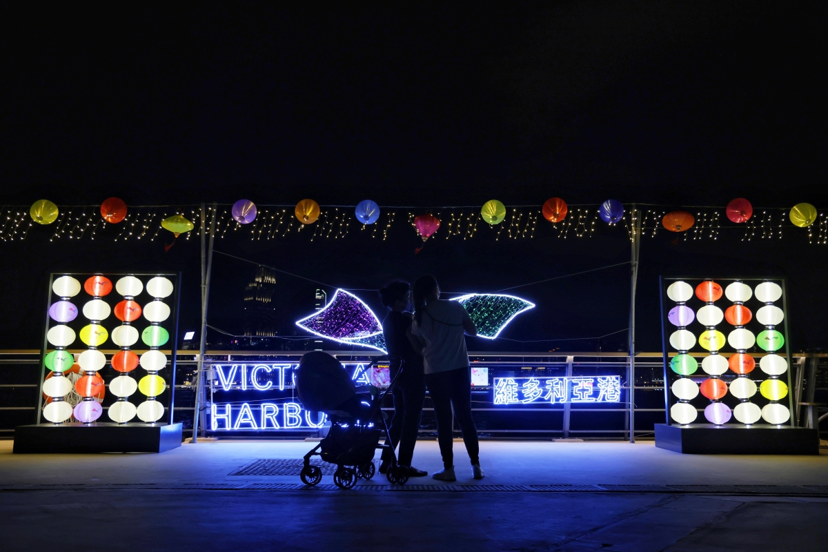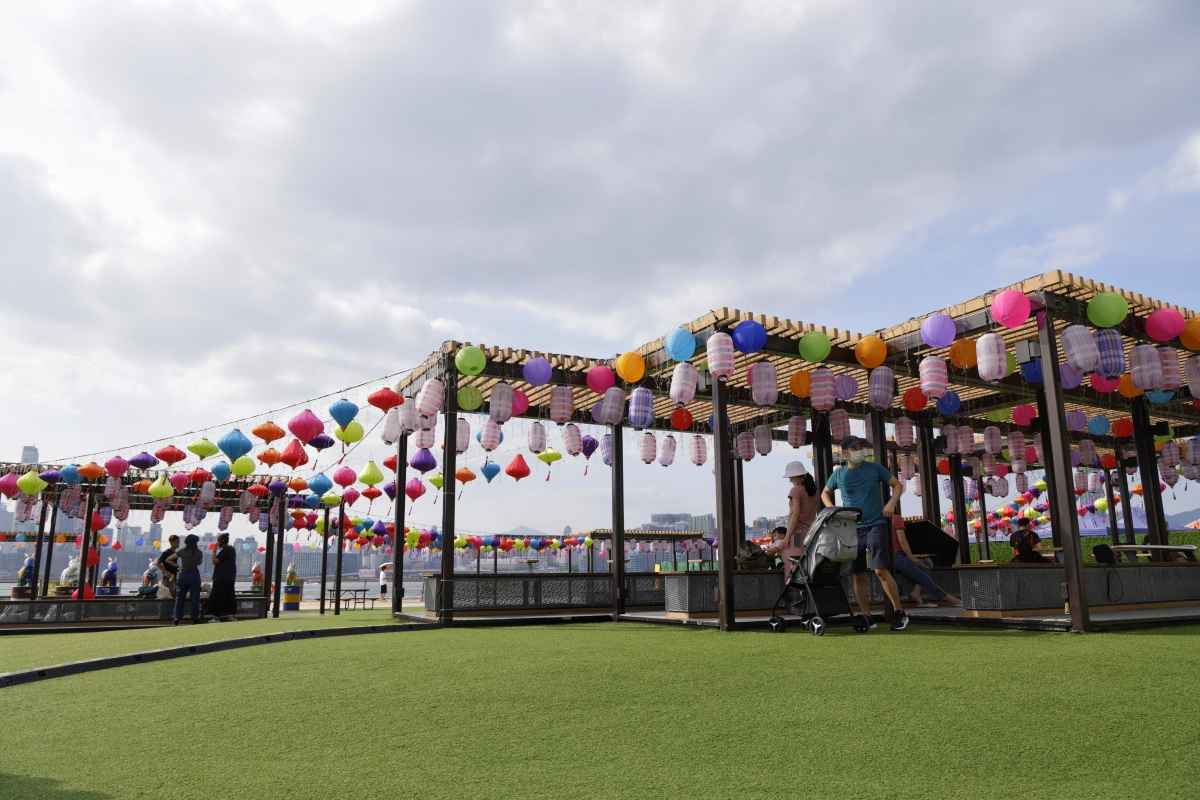 香港新聞網9月5日電(記者 曹文毓)中秋佳節降至,疫下的香港也一掃陰霾,大街小巷佈置起中秋裝置,營造節日氣氛。近日,在炮台山東岸公園,以紅白藍膠袋概念製作的燈球以及充滿香港特色的霓虹燈營造出港式中秋風味,放眼望去相當壯觀。 白天,天朗氣清時,市民在燈籠搖曳中乘涼消暑;夜幕降臨時,伴隨著海風,燈籠漸漸亮起,在頭頂形成一片”燈籠海“,白天夜晚各自呈現出不同風景,來打卡的市民絡繹不絕。