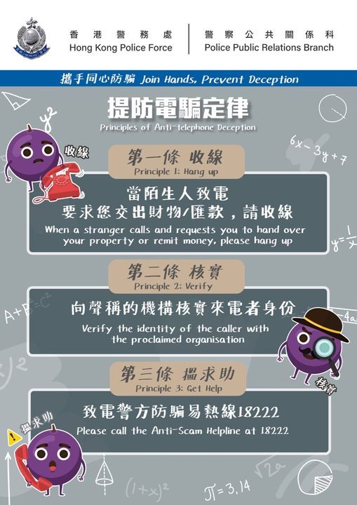 香港新聞網9月6日電 電話騙案在港時有發生,近期他們又盯上了在港隔離人士...... 香港警方在社交媒體發文表示,最近有多名由外地抵港人士,在檢疫酒店進行隔離期間,收到自稱“內地執法人員”的騙徒來電。騙徒聲稱事主涉嫌洗黑錢。期間,騙徒訛稱為還事主清白,要求他們轉帳大額款項到指定戶口。
