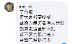 有人表示,“台灣人不欠香港人什麼,就算最後全部不批,都不要仇恨台灣人”。