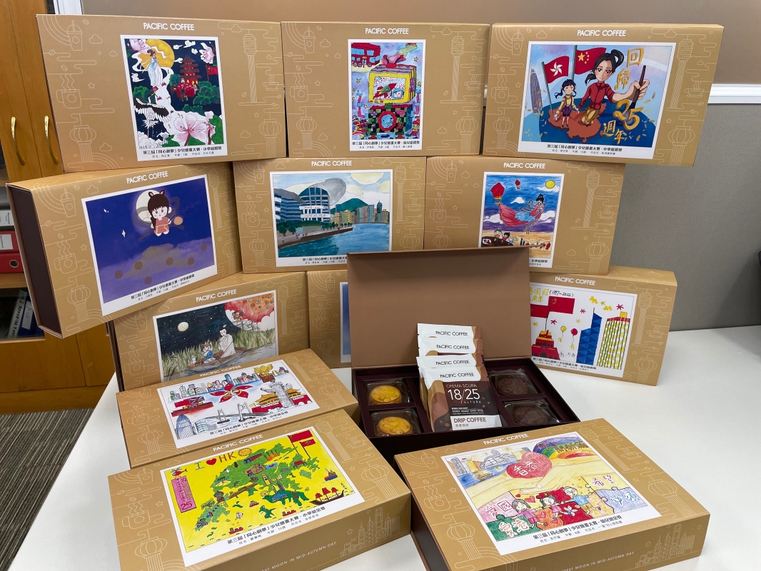 華潤集團對繪畫大賽獲獎作品的收藏及展示更進一步作了延伸。其一,與集團業務進行巧妙的結合,將參賽的優秀畫作融入華潤創業旗下太平洋咖啡的中秋月餅包裝盒設計中,使月餅飽有童趣,獨具新意。中秋前夕,華潤創業組織30餘名義工,面向香港基層青少年兒童開展“潤澤社群 愛心送月餅”義工活動,向聖基道兒童院兒童、居住於深水埗劏房及屯門區公共屋邨基層青少年兒童家庭派送印有“同心創夢”繪畫大賽獲獎作品的月餅禮盒及繪畫用具,送去中秋祝福的同時,也為社區增添藝術光彩。