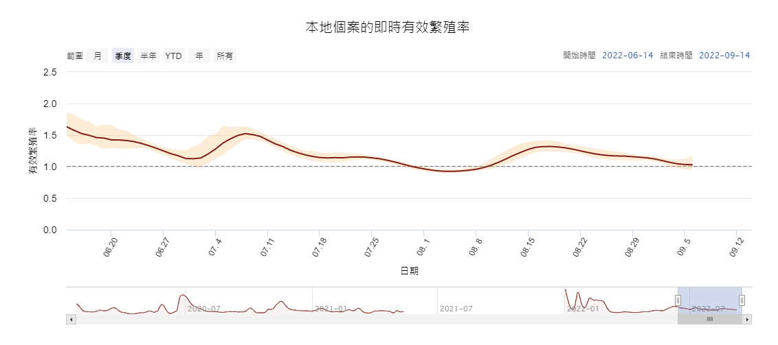 香港新聞網9月15日電 近期單日確診人數回落至8000宗以下,香港大學編製的本地個案即時有效繁殖率亦回落至1.03,即每名確診者傳染約1人。