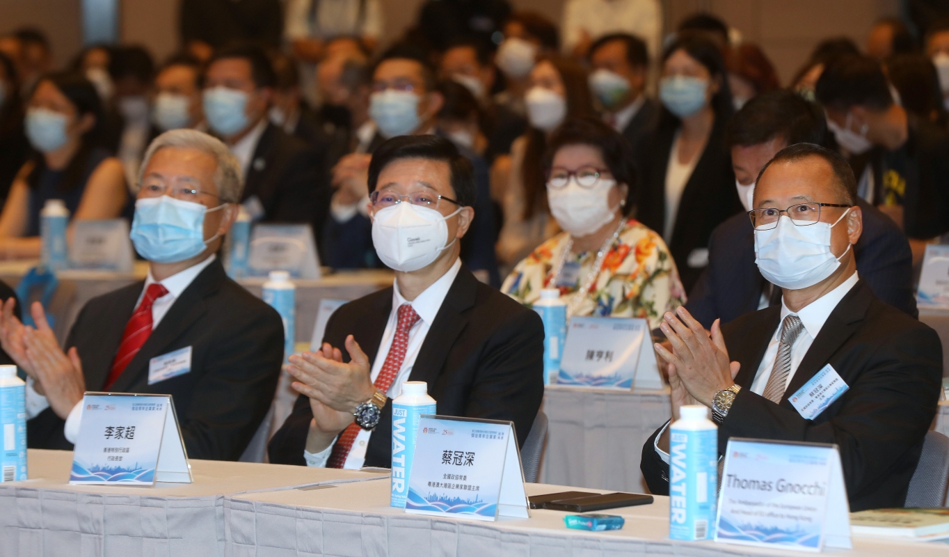 香港特首李家超,全國政協常委、粵港澳大灣區企業家聯盟主席蔡冠深、廣東省副省長張新、澳門經濟財政司司長李偉農、澳門中聯辦副主任張榮順、深圳市委常委、市委統戰部部長王強、香港中聯辦經濟部呂峰等嘉賓,分別於香港、深圳及澳門出席此次盛會。