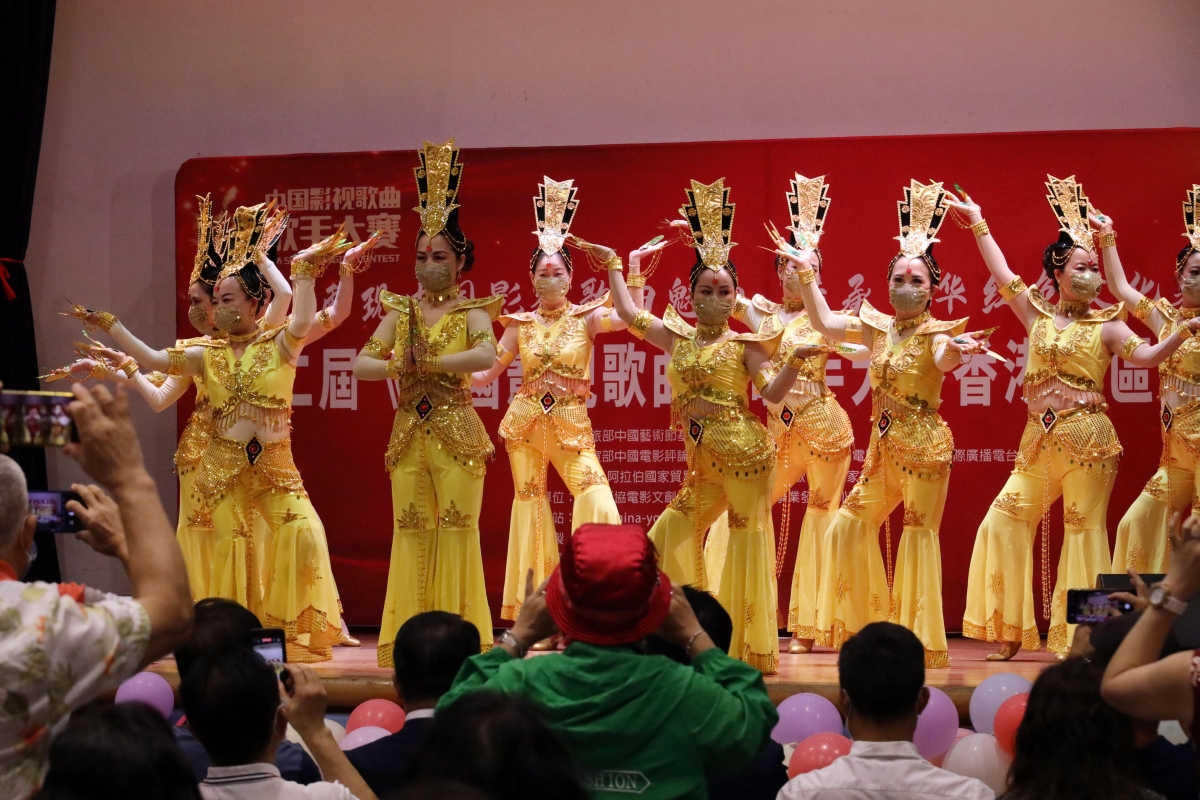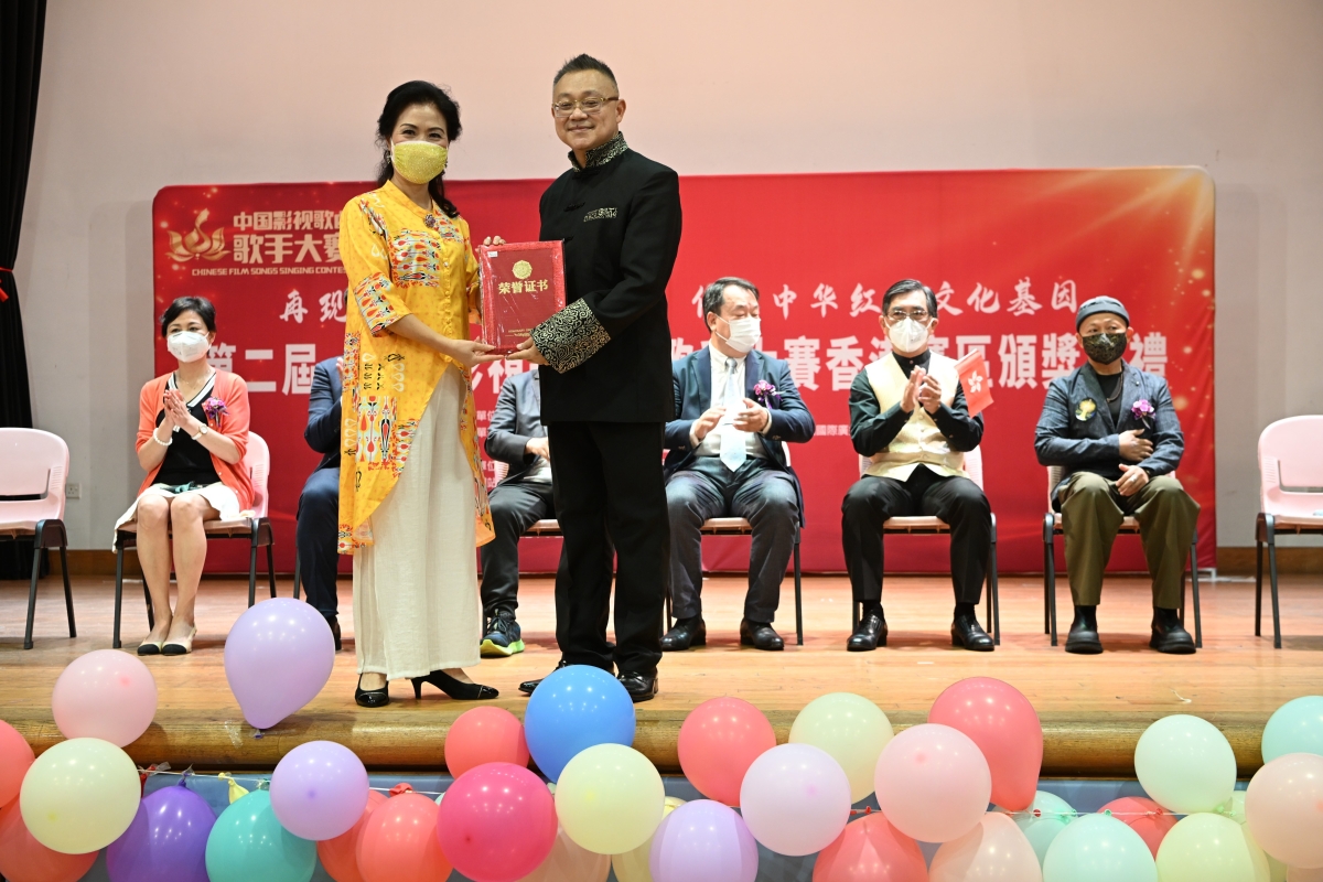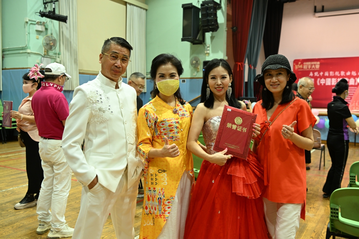 香港新聞網9月22日電(記者洪少葵)由香港戲劇文化研究會、敦煌千手觀音舞蹈藝術團主辦的第二屆《中國影視歌曲》歌手大賽香港賽區頒獎典禮,9月21日晚在香港西營盤社區綜合大樓禮堂舉行。《中國影視歌曲》歌手大賽舉辦期間得到海內外華人華僑組織的大力支持和積極配合。據獲得香港賽區突出貢獻獎的廖蘭香女士介紹,組委會滿懷對弘揚和傳承影視歌曲的使命責任,在疫情下一次一次排除種種困難,找準“窗口期”,精選大賽評委,縮小聚集範圍和時間,采用最佳比賽方式,圓滿地完成賽事的全部議程。大會評委由著名歌唱家鄧玉華、著名詞作家劉福波、著名作曲家王和聲等擔任。中國影視歌曲歌手大賽組委會高潔主席、總顧問王愛群等領導特發來賀電祝賀並期待著香港賽區將第三屆大賽辦得更加出色、更加成功。當晚,頒獎嘉賓有張虹霓、皇甫星、吳永康、郭咏健、陳年芳女士、陳志強、曾禮新、潘彼得、許德祥、高景波等。 大會向獲得香港賽區突出貢獻獎廖蘭香、形象顧問林小湛和各組別獲獎者蔡家樂、譚咏梅、林橋遠、李怡霖、陶俊然、吳萍萍、沈燕萍、李浩良、胡春梅、鄧咏翩等頒發獎項。隨後,合唱團演唱、得獎歌手獻唱及《千手觀音舞蹈團》閃亮登場,節目精彩紛呈。大會同場舉辦香港敦煌千手觀音舞蹈藝術團就職典禮。創會主席廖蘭香團長向榮譽主席張虹霓、吳永康、曾禮新、名譽顧問王子天、曾昭詢、施雄鵬、尤讚成等頒發證書。首批成員有副團長譚咏梅、陶卡雅、藍陸英、執行會長吳依莉、秘書長張虹霓、財務會計梁嘉殷、理事施江月、鄭玲玉、黃宗慧、藝術顧問黃以立、攝影師高秀楠、藝術指導蔡家樂等。成立於2018年的敦煌千手觀音舞蹈藝術團在團長廖蘭香的率領下,以傳承和發揚中國傳統文化為宗旨,凝聚了香港各界熱愛千手觀音舞蹈的姐妹們,近年來,經過登台演出,傳播正能量藝術表演,受到廣大市民和團體喜愛。