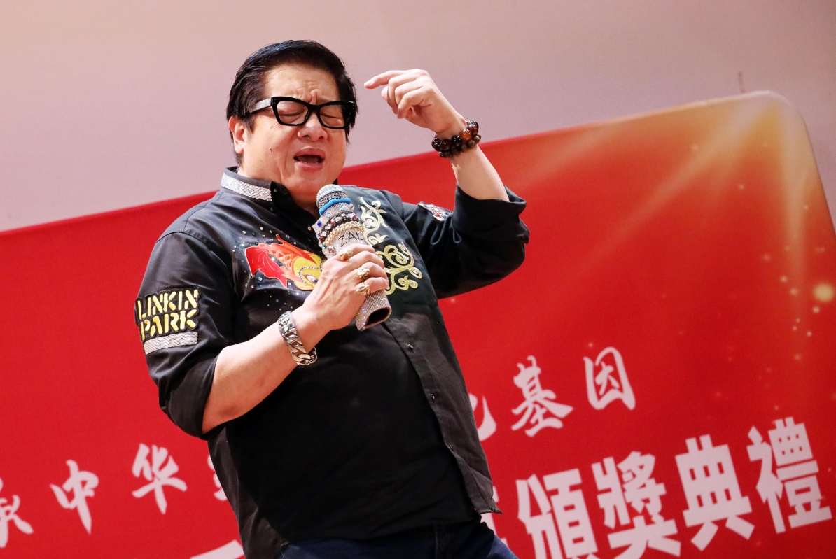 獲獎的香港戲劇文化研究會副會長蔡家樂演唱《一路上有你》。