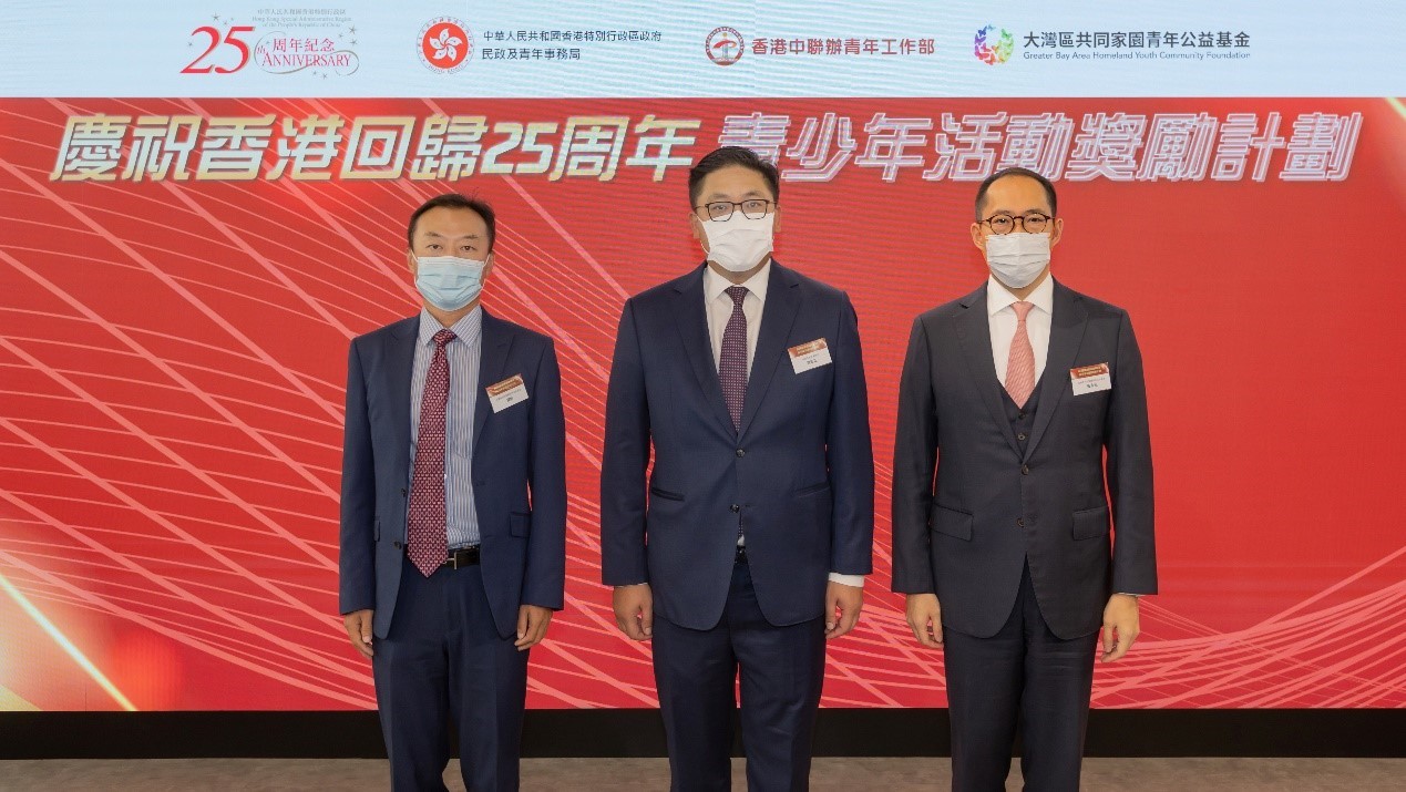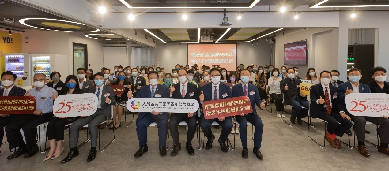 大灣區共同家園青年公益基金百萬獎勵優秀港青香港新聞網9月22日電 22日,大灣區共同家園青年公益基金(簡稱:大灣區青年基金)為鼓勵和促進各類青少年慶祝香港回歸祖國25周年活動,特別舉辦“慶祝香港回歸祖國25周年青少年活動獎勵計劃”。頒獎典禮於9月22日於YO PLACE築夢空間隆重舉行,由香港特別行政區民政及青年事務局副局長梁宏正、大灣區共同家園青年公益基金主席黃永光先及行政總裁楊彬主禮及頒奬,一共有63間對社會有承擔的青少年機構所舉辦的110項非牟利活動得獎,145名優秀義工獲嘉許,共獲頒發總額超過100萬元(港元,下同)的獎金。 是次評選獎勵的項目包羅萬有,包括文藝、體育,扶貧、環保、研討、教育、展覽、論壇和比賽等。獎勵計劃特設三個主要獎項,包括優秀活動獎、優秀設計獎和優秀組織獎,每個得獎項目分別可獲獎金港幣20000元、10000元及2000元。評選準則以慶回歸為主題,並能體現團結向上、關愛共融、貢獻社會的精神,有利於廣大青少年增長見識,培養國家觀念和香港情懷等。
