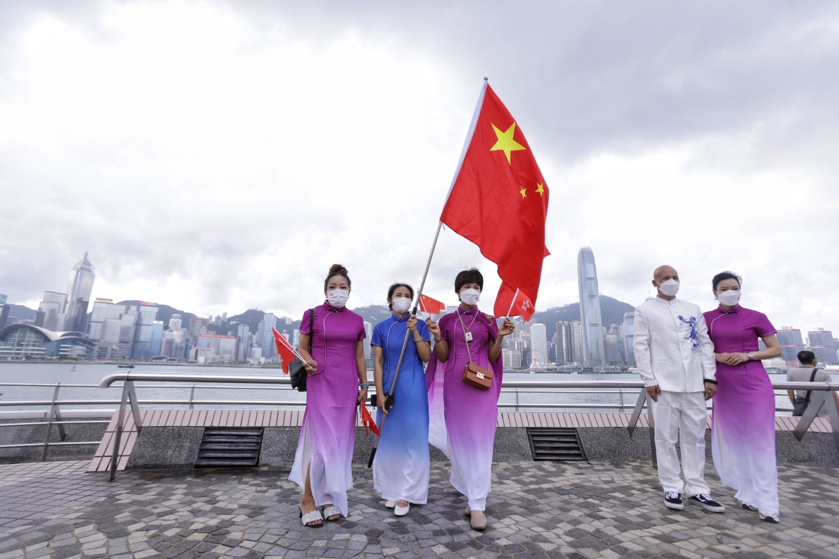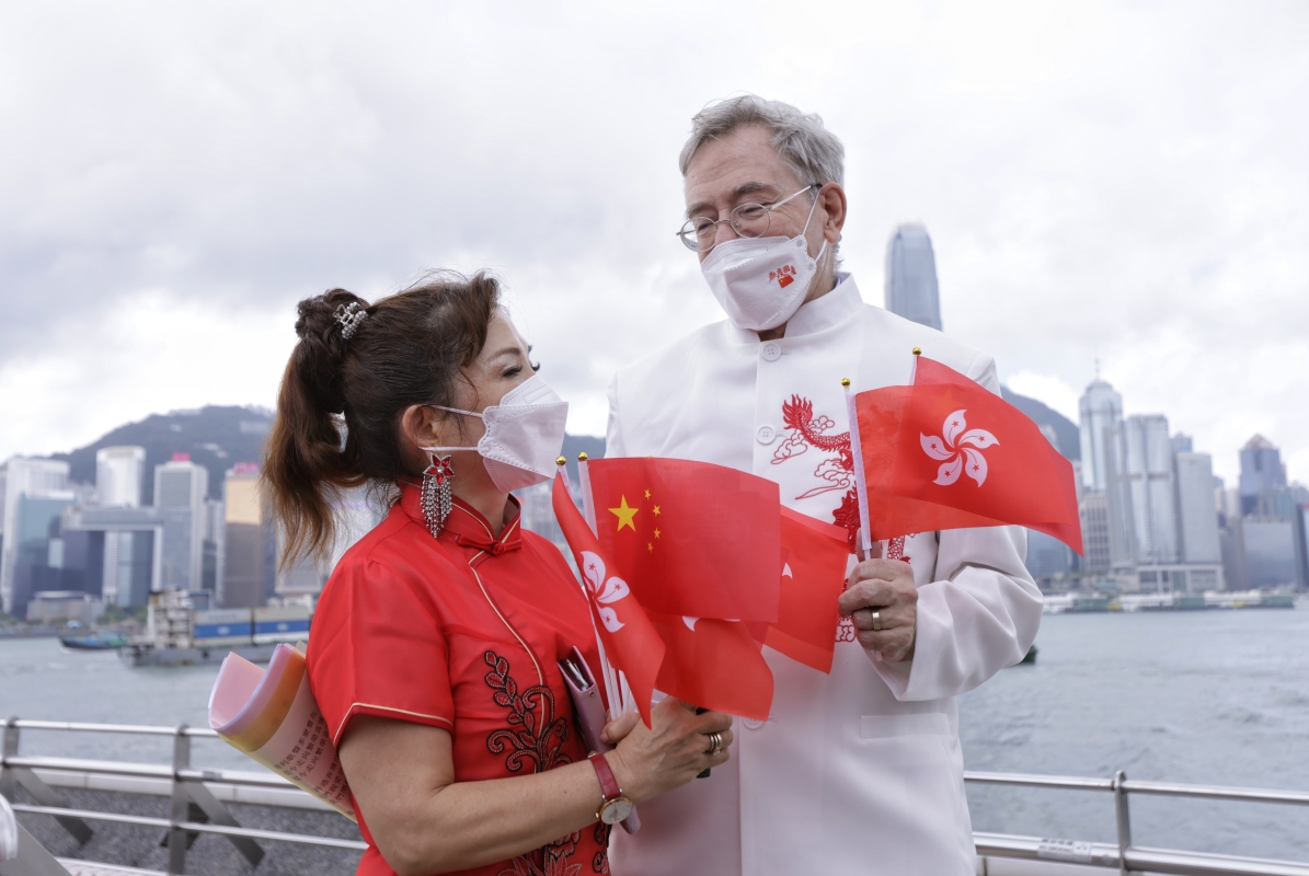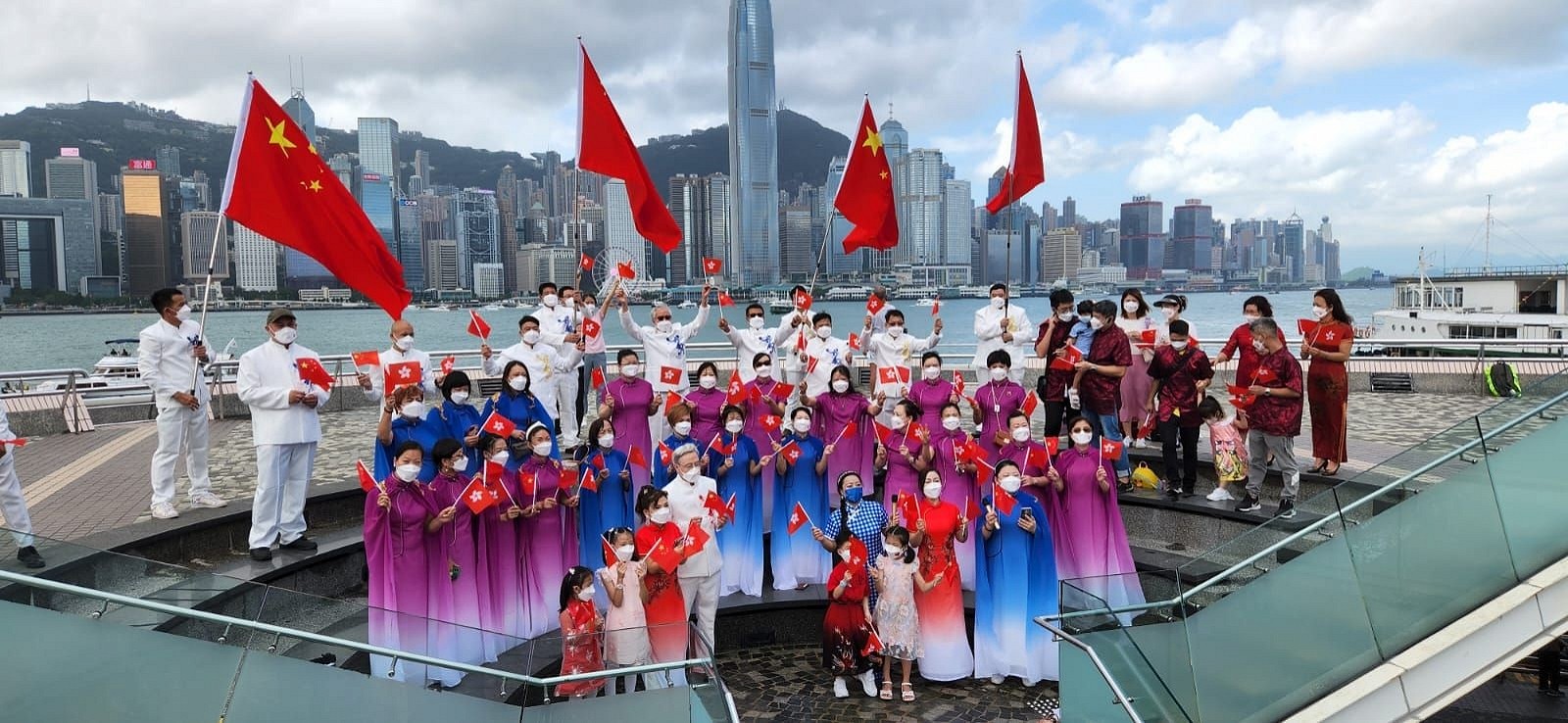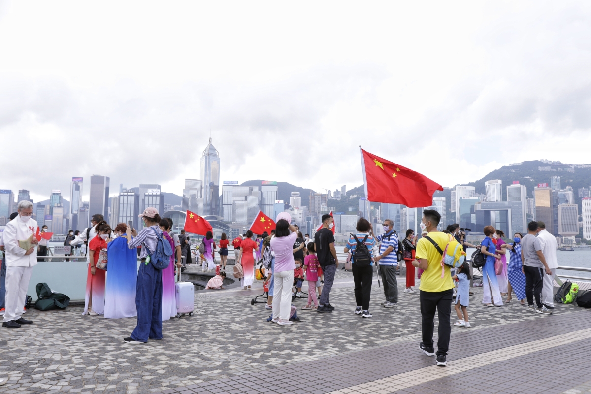 香港市民尖沙咀碼頭快閃賀73周年國慶
