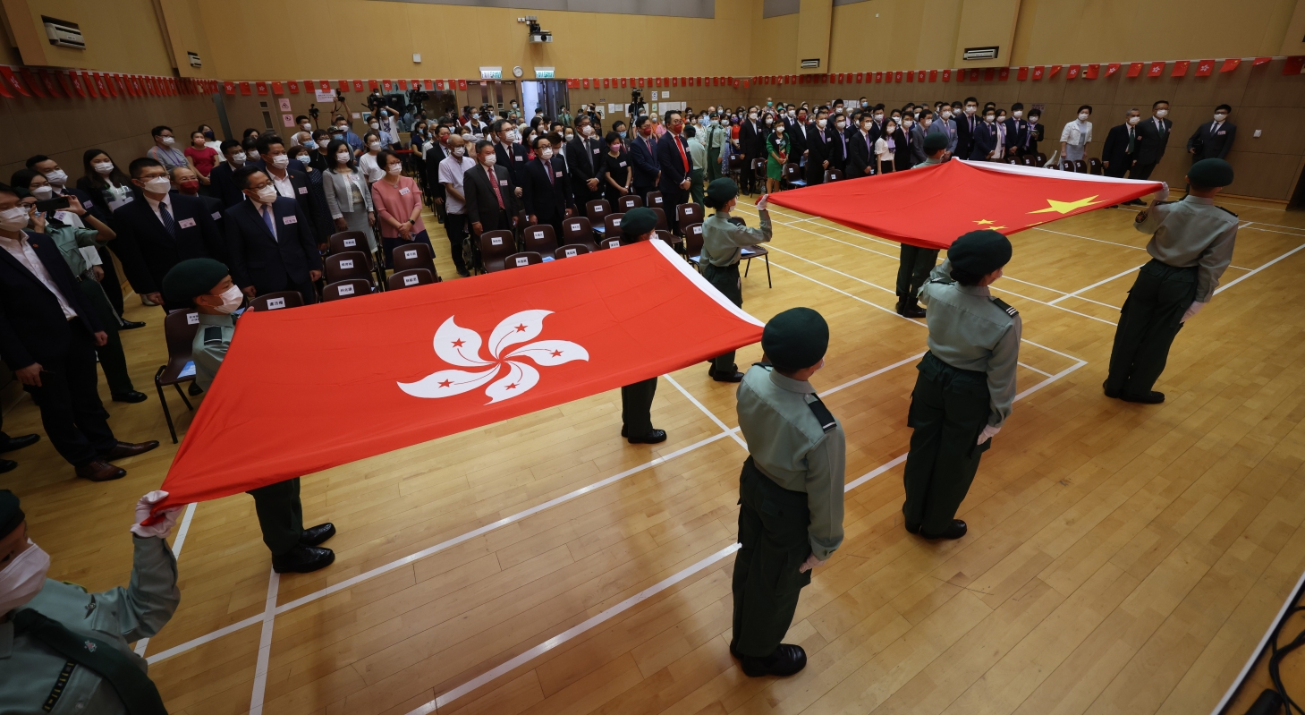 香港新聞網10月1日電 為慶祝中華人民共和國成立73周年,由九龍社團聯會主辦“慶祝中華人民共和國成立73周年慶祝典禮”,典禮儀式於10月1日假美孚社區會堂舉辦。今日儀式邀請了民政及青年事務局麥美娟局長、警務處蕭澤頤處長、海關何珮珊關長、保安局卓孝業副局長、中聯辦九龍工作部李文彬副部長、懲教署黃國興署長以及九龍社團聯會連浩民首席會長、王惠貞會長、徐莉理事長、簡志豪監事長及林德興常務副理事長蒞臨活動,與大眾市民歡聚一堂,一同祝賀中華人民共和國成立73周年的非凡時刻。