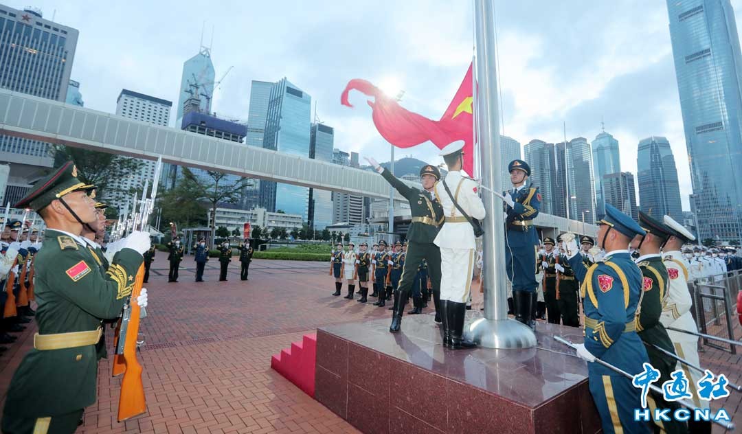 10月1日早上,解放軍駐香港部隊在中環軍營舉行隆重的升旗儀式,熱烈慶祝中華人民共和國成立73周年。