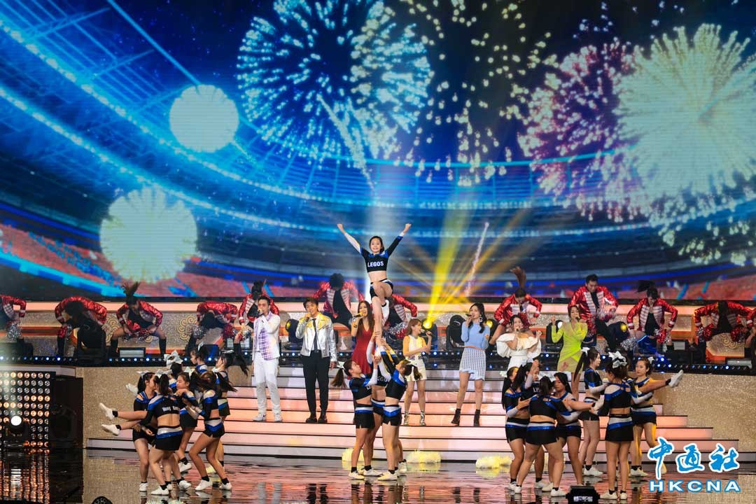 “香港同胞慶祝中華人民共和國成立七十三周年文藝晚會”,10月1日於香港體育館舉行。今年晚會主題為“盛世騰飛 璀璨未來”,匯聚音樂劇、舞蹈、武術、粵劇等各種表演形式,在展示國家偉績同時,亦突顯香港在國際體壇、文化藝術的成就。其中焦點節目“中國航天 伴我啟航”由曾到內地航天衛星發射中心交流的香港太空館“少年太空人”體驗營學員及美諾諦詩舞蹈工作坊共同呈獻,以優美的中國舞蹈演繹中國神話傳説,呈現祖國偉大航天故事。(香港中通社記者 許其皓攝)