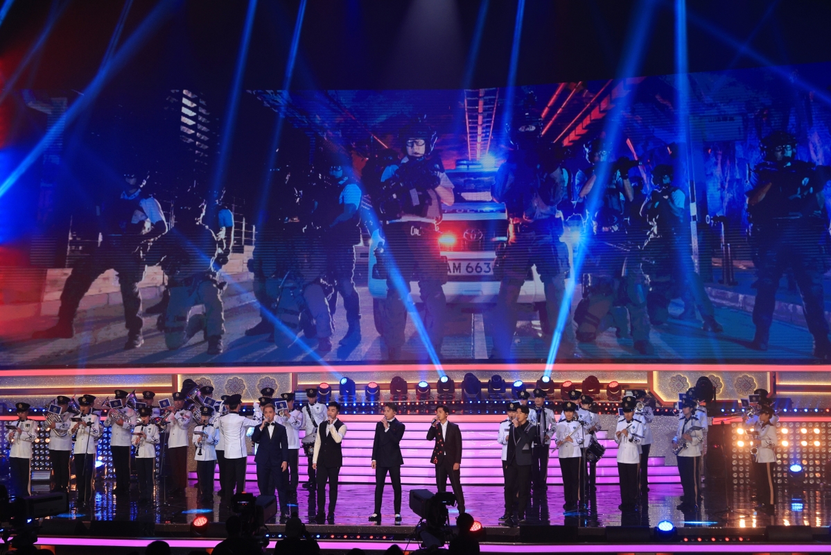 香港警察樂隊聯同袁偉豪、鄭俊弘等藝人演出“中華兒女 紀律精英”