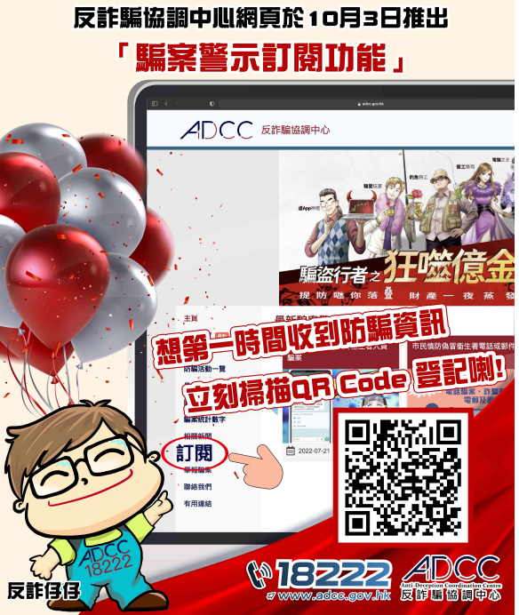 香港新聞網10月3日電 香港警方反詐騙協調中心網站於10月3日推出“騙案警示訂閱功能”,方便市民以電郵形式接收最新的騙案警示信息,以進一步提高市民的防騙意識。