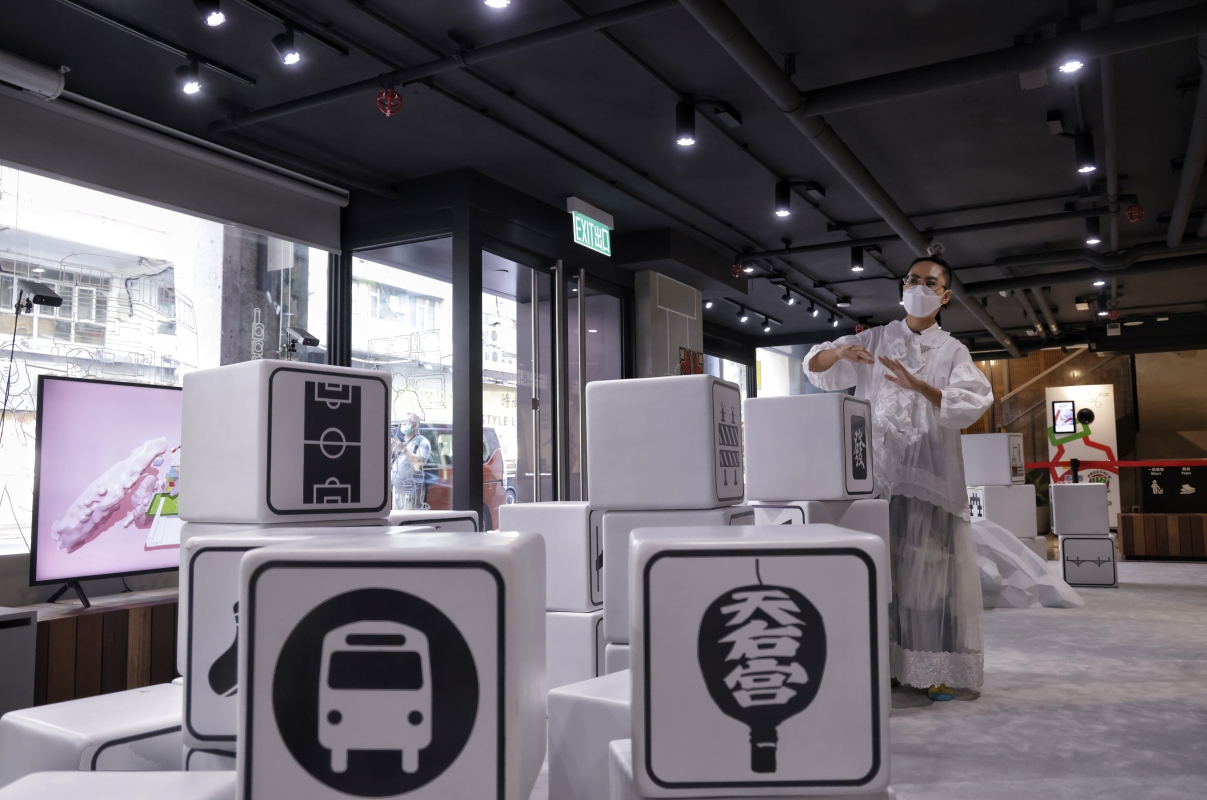 香港新聞網10月3日電(記者 曹文毓) 由香港藝發局主辦的“藝術·科技”展覽,10月2日至24日,在旺角618上海街呈獻本地藝術家曲淵澈的個人展覽“虛空之地”。 該展覽以“流動性”為關鍵詞,現場設置多個“海浪”裝置,以及分別代表不同建築、社區設施與土地用途的組件,配合投影,移動偵測等裝置,以科技結合藝術手法,呈現波蘭社會學家齊格蒙·鮑曼所提出的液態現代性。