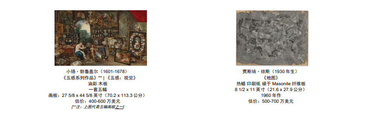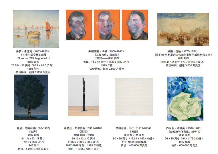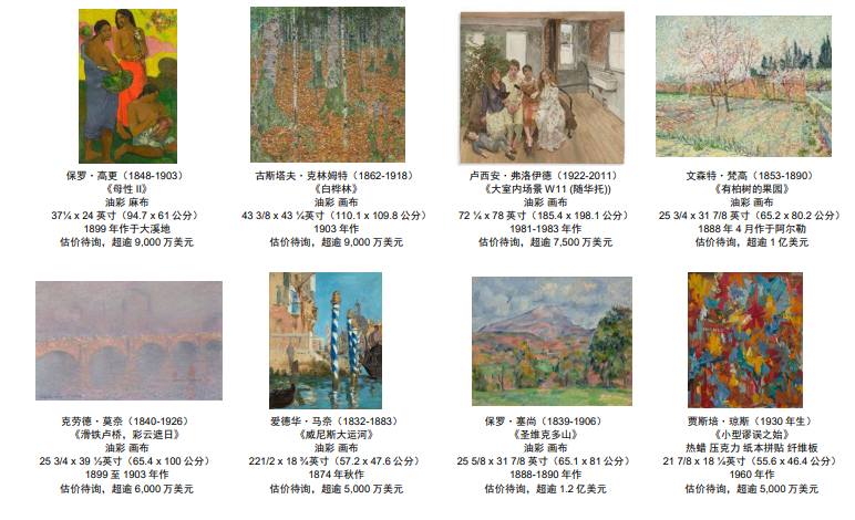 珍藏中的精彩拍品將會由11月9日起在佳士得洛克菲勒中心舉行的兩場現場拍賣中矚目上拍,估價超逾10億美元,規模史無前例。拍賣帶來150多件佳作,將會全面揭示藝術史的發展脈絡。這場極具歷史意義的拍賣所有收益將會按照艾倫的遺願撥捐慈善用途。