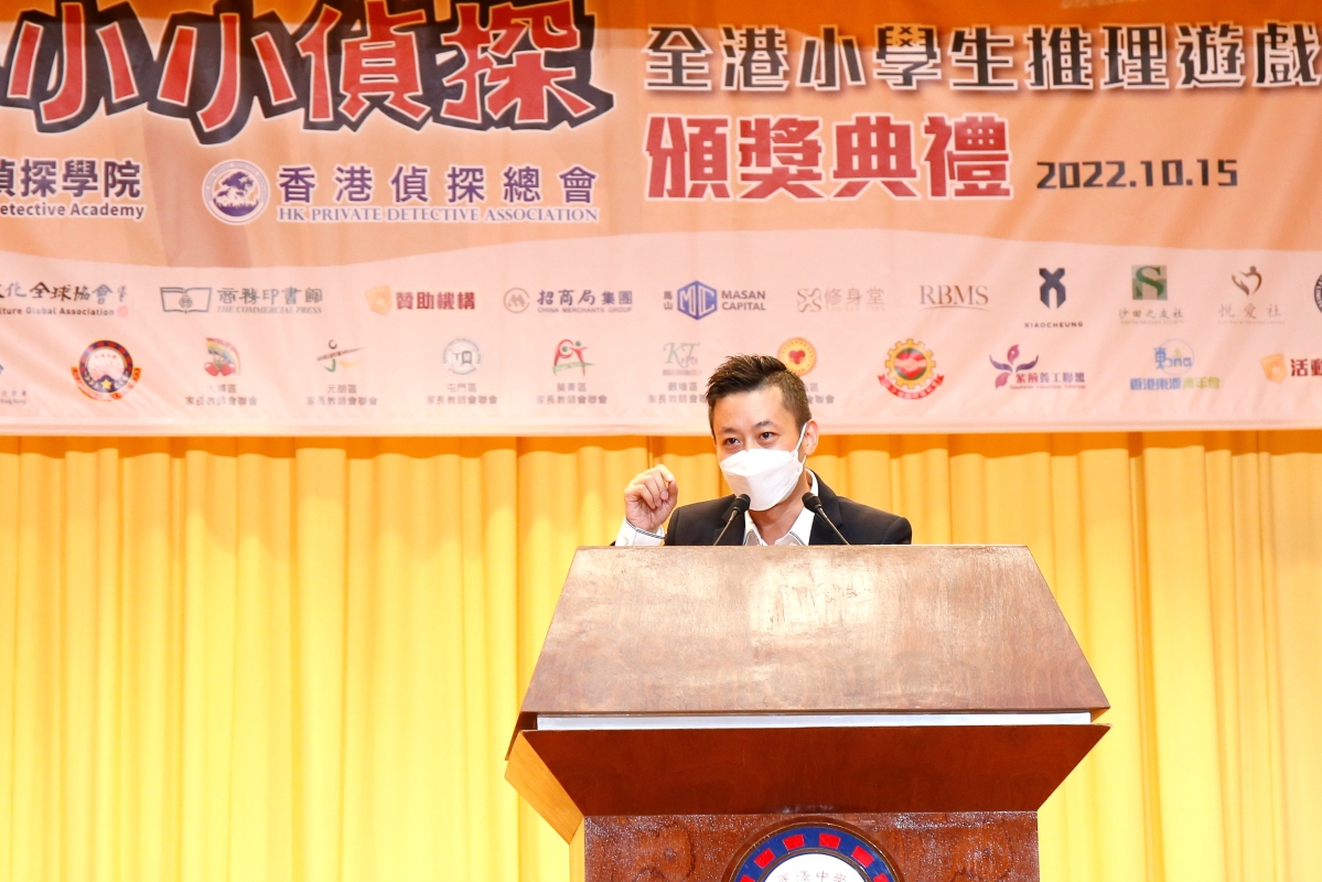 特區政府商務及經濟發展局副局長陳百里致辭時表示,非常欣賞參賽者那份勇於嘗試、勇於挑戰的精神,並希望年輕人繼續好好學習、好好裝備自己,未來為香港、為國家作出積極貢獻。 香港偵探總會會長何國光致辭時表示,“小小小偵探”是全港首個以偵探為題材的大型校際比賽,冀打破傳統學術比賽模式,既能考驗參賽者觀察、分析、思考、推理、團隊協作等綜合能力,又可為學生提供一個刺激、好玩的體驗。此外,大會也希望透過本次比賽,提升參賽者分辨信息真假的能力,增強防騙及守法的意識。 何國光提到,大賽於去年九月份開始策劃,原定今年年初進行,後因疫情而暫緩。儘管報名期間正值第五波疫情爆發,最終仍有逾300隊伍共900多名學生報名,他們來自全港18區共137間學校。大家對這次比賽的關注和熱愛遠超預期,其中有一間學校由於校內學生報名太踴躍,人數遠超上限,最終他們要先進行校內賽選出3隊學生代表學校出賽。