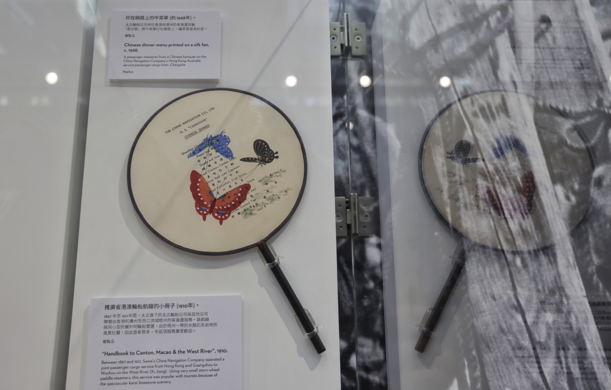 太古輪船公司來往香港和澳洲的客貨運班輪“長沙號”將中菜單印在紗絹扇上,讓乘客留作紀念