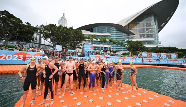 香港中通社10月23日電 題:香港維港泳開鑼游泳愛好者劈波斬浪 香港中通社記者 李明珠 香港年度體壇盛事“新世界維港泳”10月23日再度回歸,眾多游泳愛好者齊聚維港兩岸,劈波斬浪;盡管參賽人數受限,但比賽精神未變,不少游泳好手初次挑戰賽事。