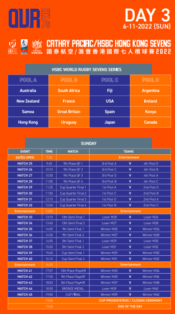 國際七人欖球賽重回香港香港新聞網11月4日電 時隔三年,香港國際七人欖球賽於11月4至6日在香港大球場復辦,共上演45場;這是暴發新冠疫情以來,首個本地舉行的跨日子大型體育活動。 七人欖球是傳統欖球運動的變奏版,節奏較快、比賽時間較短。每隊有7名球員,分上下半場,每場7分鐘。達陣可得到5分,而達陣後落踢射門,射中得2分。在球場上,可看到欖球員們全力以赴上陣得分。今年共有16隊欖球隊伍在球場上一較高下,快快留意你的心儀球隊在何時上場!