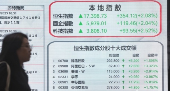 科指升7.7%,報3269點。科技股領市,阿里巴巴升12%,騰訊升逾9%,美團升逾8%。康希諾生物回吐一日後再上,半日升逾29%。電動車股造好,其中小鵬汽車升逾24%。(完)