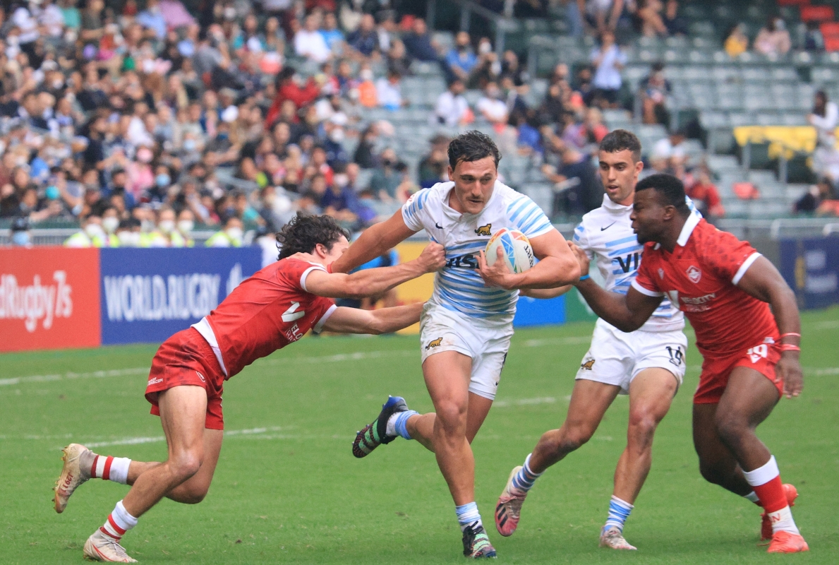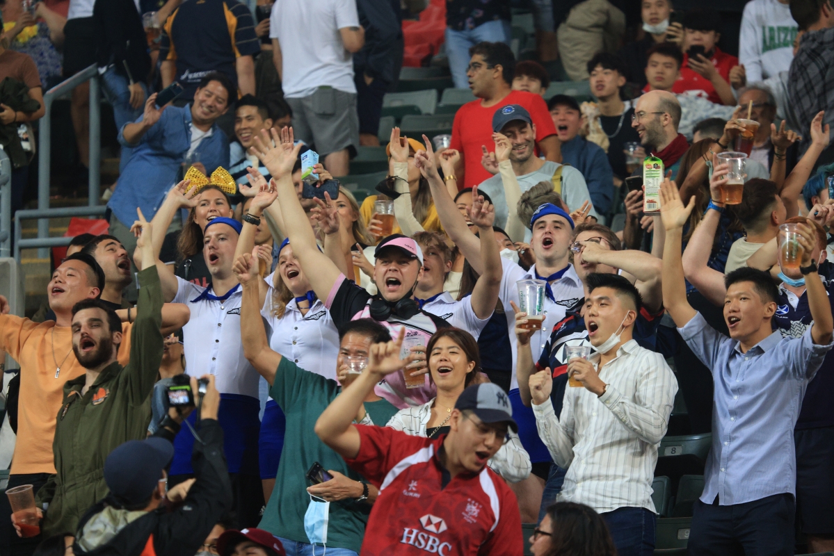 香港新聞網11月4日電(記者許其皓)因疫情停辦三年的香港國際七人欖球賽回歸,11月4日起一連三日在香港大球場舉行。比賽首日現場觀眾席人山人海,氣氛熱烈。 “國泰航空/匯豐香港國際七人欖球賽”於11月4日至6日在香港大球場舉行,3日內上演共45場比賽。這場賽事將會是2023年匯豐世界七人欖球系列賽賽程上的首站賽事。來自阿根廷、澳洲、加拿大、斐濟、法國、英國、愛爾蘭、日本、肯雅、新西蘭、薩摩亞、南非、西班牙、美國、烏拉圭的隊伍齊集香港。香港隊3年來首次主場亮相,其首戰於11月4日晚迎戰勁旅澳大利亞隊。當晚,在首場小組賽,香港隊以0:43不敵澳大利亞隊。香港國際七人制橄欖球賽是香港最重要的國際性橄欖球賽事之一。賽事成立於1976年,每年3月下旬或4月初由該周五開始,由香港橄欖球總會一連三日在香港大球場舉行,吸引世界各地橄欖球隊來港參賽。一些橄欖球迷會專程來香港觀看賽事。