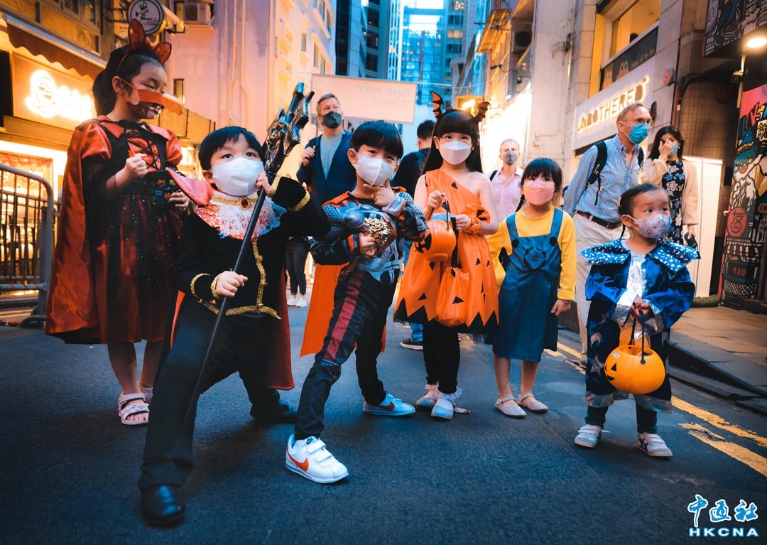 10月31日是一年一度的萬聖節,當晚香港蘭桂坊熱鬧非凡,不少市民精心裝扮一番,穿上奇裝異服慶祝“鬼節”。(香港中通社記者 許其皓攝)