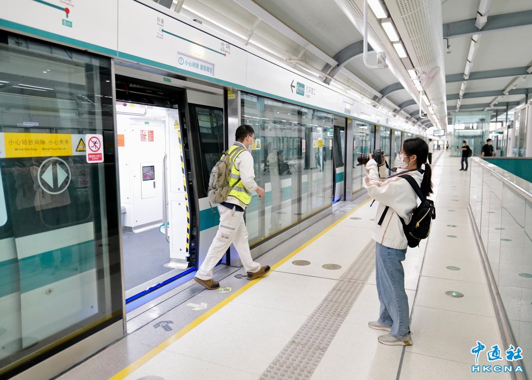 11月3日,多家媒體記者試乘體驗深圳地鐵6號線支線。該支線起自光明區6號線光明站,止於深莞邊界,全長約6.13公裡,共設4站4區間,分別為光明站、圳美站、中大站和深理工站。6號線支線將架起深圳、東莞雙城地鐵的互通,服務雙城、造福大灣區,成為新時代軌道交通跨城協同發展的典範,計劃年內開通運營。(香港中通社記者 聞子攝)