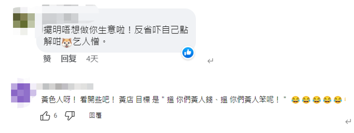 社交媒體截圖 此外,該網友還吐槽這家“黃店”的食物也非常難吃——“星洲炒米好難吃!油雞、叉燒和燒鴨的水平不宜在唐人街立足。”並補充說,雖然該“黃店”乾炒牛河做得不過不失,凍檸茶也不錯,但店家態度“令人不想有下次”。 翻查資料,這家在英“黃店”已非第一次被點名批評了!幾個月前,也有移英港人一家四口前來光顧這家店,卻慘遭冷遇。該移英港人發文分享稱,自己剛入座尚未想好要吃什麼,已遭店家數次催促下單。因一名家人暫時未想好吃什麼,匆忙之下先選了三份餐,並詢問店家可否先下訂單。 令移英港人沒想到的是,此常見操作竟惹火了“黃店”曼城樓的老闆娘,對方強硬要求必須一起下單。移英港人與其商量途中,該老闆娘更極其無禮地摔下下單紙,轉身就走……惹得該港人翻臉怒斥,幫襯這家店是因為考慮大家都是移英“同路人”,“他們怎麼能這麼對待自己人?”質疑“如果英國本地人光顧,她會不會這樣子對別人?” 該移英港人最後決定將“黃店”曼城樓永久移入黑名單,從此不再踏入。 移英港人與“黃店”不對付的消息傳回香港後,有網友調侃“看開些吧”,直指“黃店”就是看中“黃絲”容易受騙,表面上打著“反中”的招牌,心裡盤算的都是如何賺“黃絲”的錢。