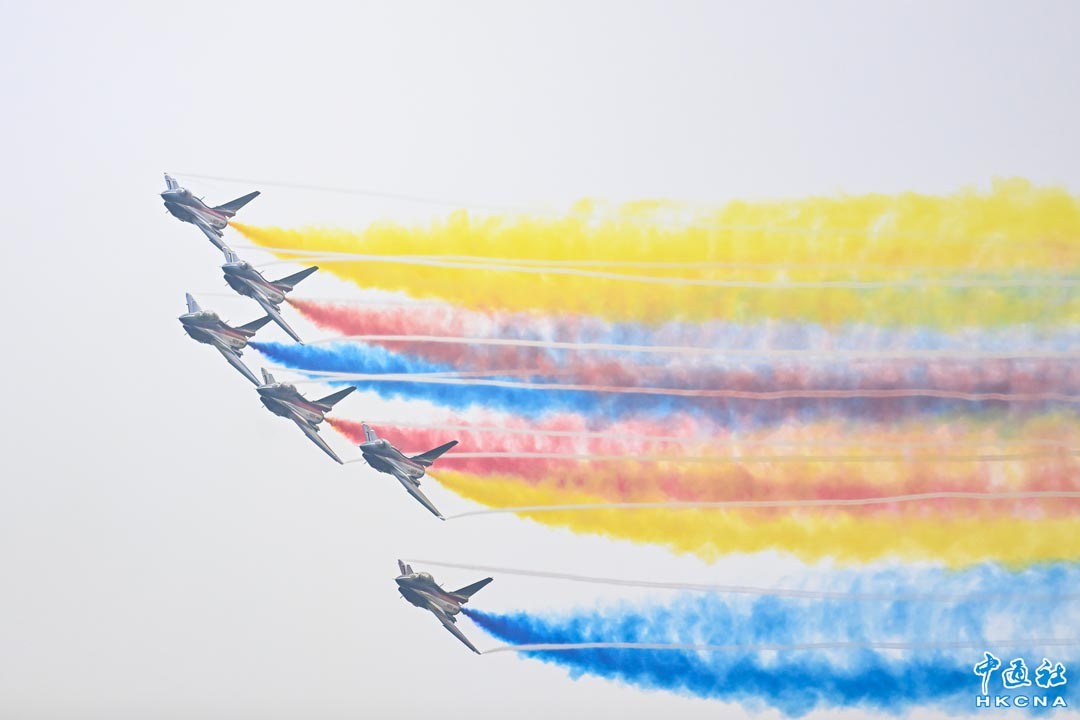 11月8日,廣東省珠海市,中國空軍八一飛行表演隊在第十四屆中國航展上進行飛行表演。當日,第十四屆中國國際航空航天博覽會在珠海國際航展中心開幕。(香港中通社圖片)