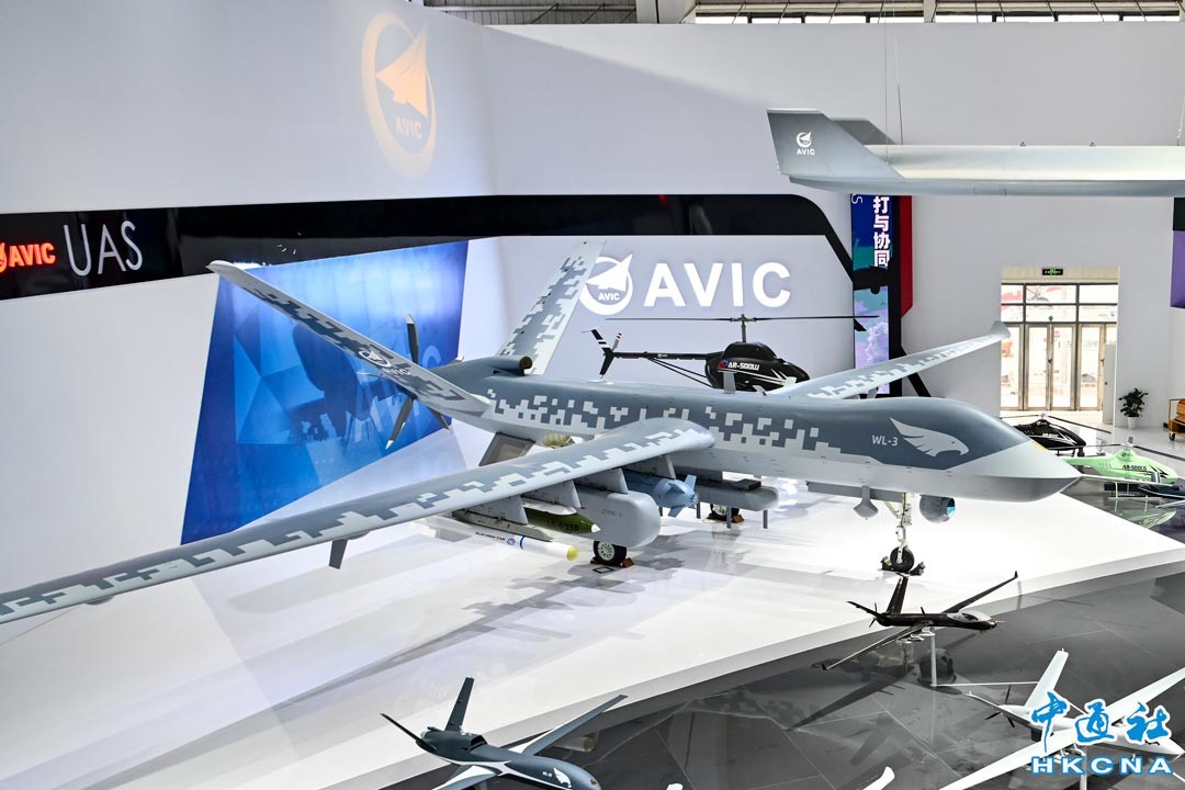 近年,大量的無人機參與戰鬥,使得無人機在某種程度上變成了衡量一個國家實力的標準之一。受此影響,今年珠海航展多款中國無人機備受關注,其中翼龍-3、飛鴻-97A、彩虹-7被視為航展的無人機“三巨頭”。圖為翼龍-3(WL-3)無人機在第十四屆中國航展上展出,這也是該無人機首次公開亮相。(香港中通社圖片)
