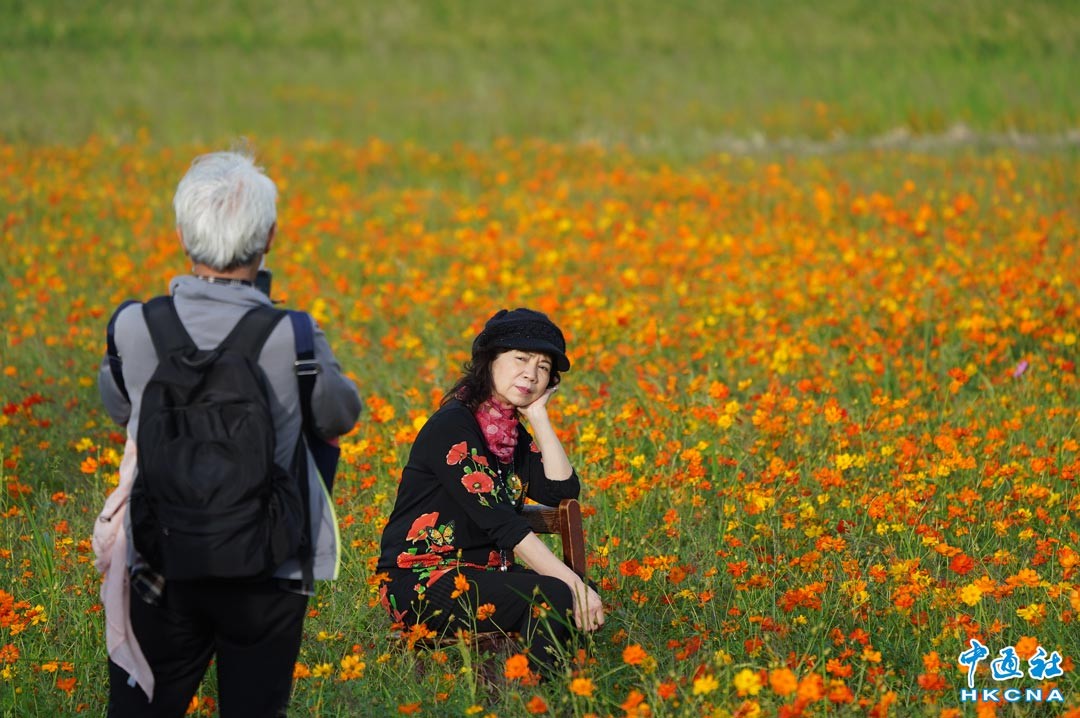 台灣今年花海節,展出5公頃花田,是台北最大花海,以《2022愛戀關渡花現幸福》為主題,栽植了多色大波斯菊、黃波斯菊、大百日草與千日紅,打造粉、白、橘等各色花海,帶來豐富層次變化的視覺體驗。花海節至11月20日結束。(香港中通社圖片)