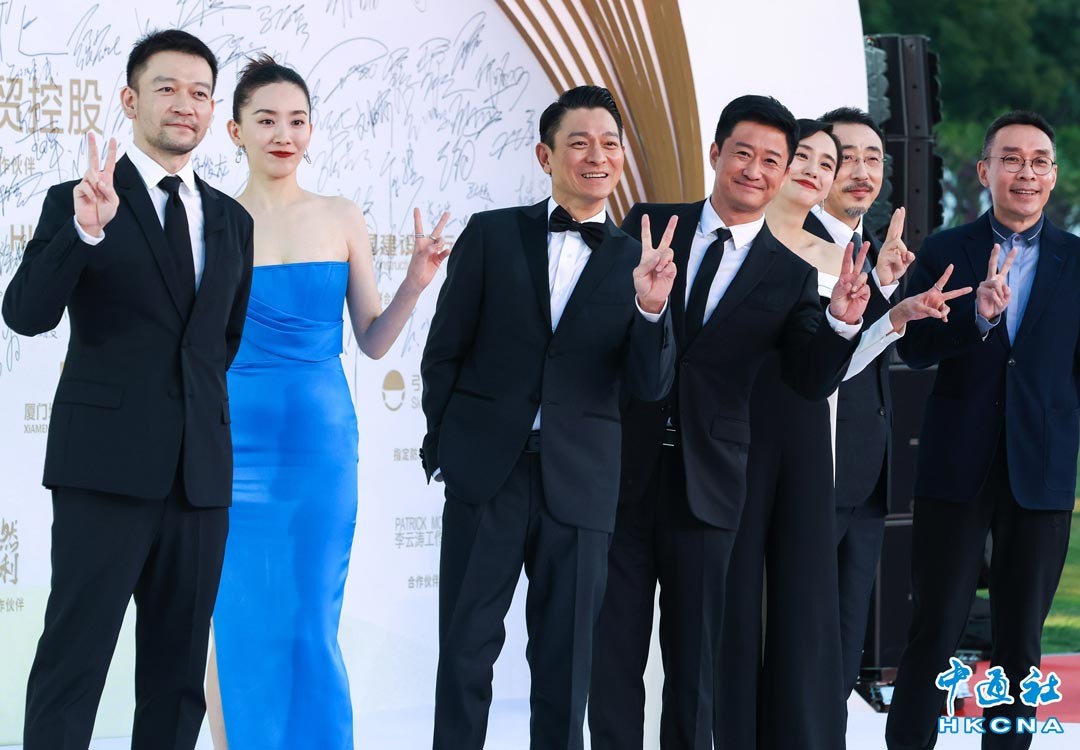11月12日,第35屆中國電影金雞獎閉幕紅毯儀式在福建廈門舉行。圖為劉德華、吳京等《流浪地球2》劇組亮相紅毯。(香港中通社圖片)