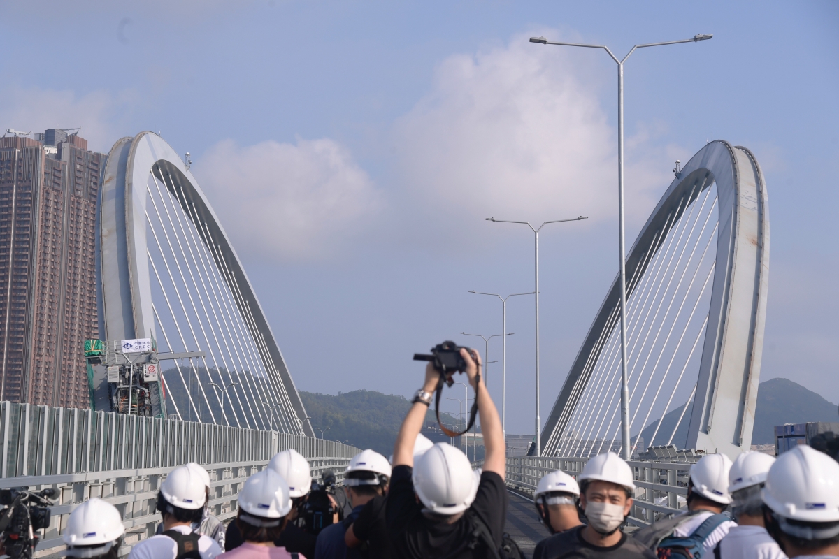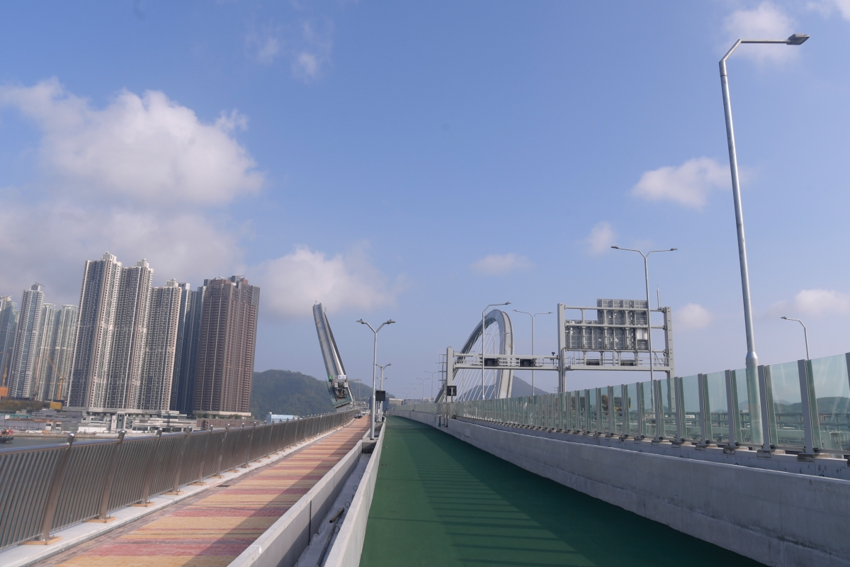 香港新聞網11月15日電(記者 許其皓)11月15日,香港將軍澳-藍田隧道及將軍澳跨灣連接路進行最後階段的準備工作,土木工程拓展署安排傳媒前往將軍澳跨灣連接路進行拍攝。將軍澳-藍田隧道及將軍澳跨灣連接路將於12月11日通車,以完善運輸網絡,可提供新的道路往來將軍澳和觀塘以及東區海底隧道,於早上繁忙時段往來日出康城和觀塘市中心的行車時間最多可縮減約20分鐘,以便利市民出行。 將軍澳-藍田隧道是連接將軍澳和市區一條新的主幹道路,全長約3.8公里,其中約2.2公里為隧道,東面接駁跨灣連接路和寶順路,西面連接東區海底隧道、觀塘茶果嶺道和興建中的T2主幹路。將軍澳-藍田隧道為現有的將軍澳隧道提供替代路線,開通後可分流往來將軍澳的交通。