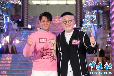 藝人郭富城、谷德昭出席聖誕亮燈儀式。