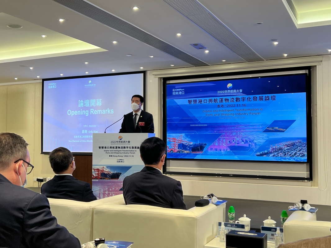 香港新聞網11月16日電 全球航運界年度盛會──第二屆世界航商大會15日在香港開幕。分論壇“智慧港口與航運物流數字化發展”16日在香港以線上及線下方式舉行。與會嘉賓聚焦智慧港口、數字航運等行業新熱點,立足港口航運轉型新發展,探討產業鏈合作新空間。 分論壇以“新趨勢,新協同”為主題,由招商局港口集團副董事長嚴剛主持主旨演講,副總經理李玉彬主持圓桌論壇。從智慧港口與數字航運發展的角度,探討港航業面臨的困局及對策,分享優秀案例經驗,拓展港航數字化產業鏈的合作空間。