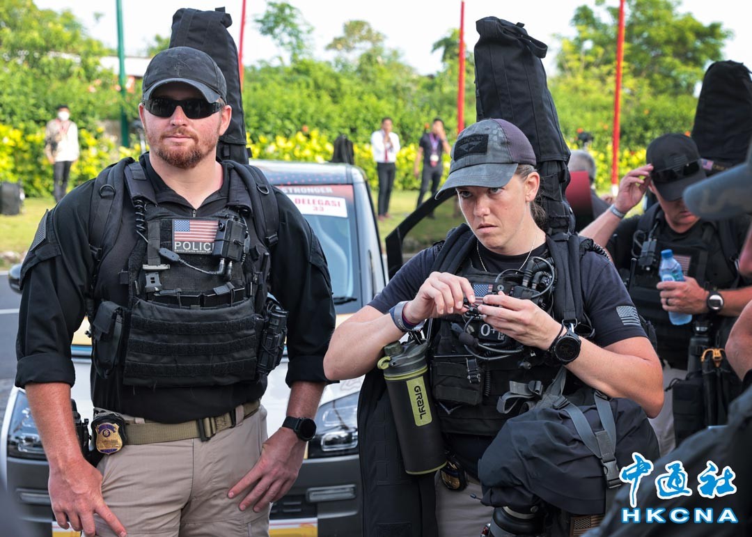 二十國集團領導人峰會(G20)11月15日至16日在印尼巴厘島舉行。15日上午約7時30分,美國特勤局特工到場戒備。(香港中通社記者 謝光磊攝)