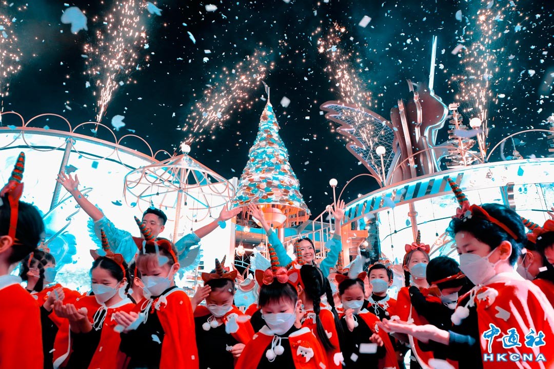 11月16日,香港“海港城”商場聖誕亮燈儀式舉行。海港城今年的聖誕装置全面回復至以往規模,以快樂聖誕爲題打造成旋轉獨角獸樂園,讓香港市民和世界各地的朋友都能夠一同感受香港聖誕的濃厚節日氣氛。(香港中通社記者 張海德攝)