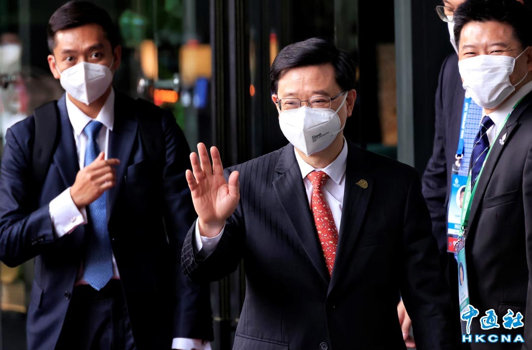 11月17日,香港特區行政長官李家超到達泰國,出席在曼谷舉行的第29屆亞太經合組織領導人非正式會議及相關會議。圖為李家超在曼谷會見傳媒。(香港中通社記者 曹文毓攝)