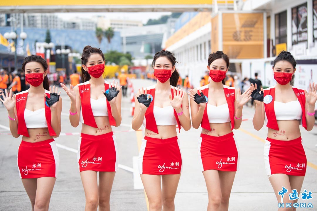 11月17日,車模在賽車中心。當日,第69屆澳門格蘭披治大賽車進行多個自由練習賽。 香港中通社圖片