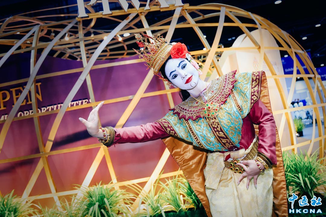 11月18日,亞太經濟合作組織(APEC)第二十九次領導人非正式會議在泰國曼谷登場,當日,會場內的媒體中心熱鬧非凡,各參展商爭先展示特色泰國文化,圖為泰式妝容展示。(香港中通社記者 曹文毓攝)