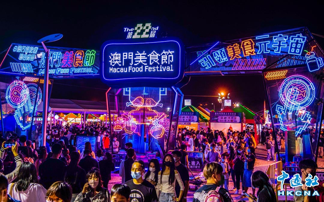 11月18日,市民在“第二十二屆澳門美食節”上。當日,由澳門餐飲業聯合商會主辦的“第二十二屆澳門美食節”十一月十八日至十二月四日在澳門旅遊塔前地西灣湖廣場舉行。今屆美食節設約一百二十個展位,並以“引領美食元宇宙”為主題,推出線上雲遊美食節。 香港中通社圖片