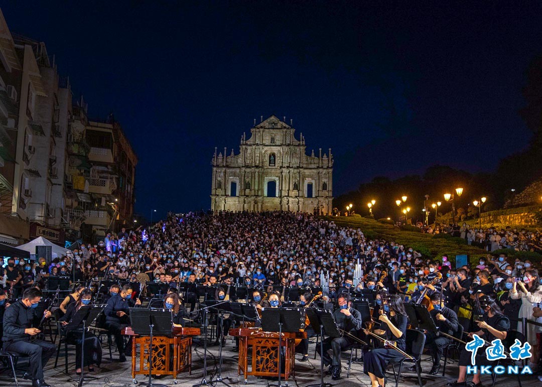 11月19日,澳門中樂團在“樂韻悠揚大三巴”上演出。當日,由澳門文化局主辦的“樂韻悠揚大三巴”活動在大三巴牌坊順利舉行,澳門中樂團帶來多首經典悅耳曲目,結合音樂演出與世遺景點的魅力,充分體現了澳門中西文化交融的特色,現場吸引眾多市民旅客圍坐及駐足欣賞,夜空下構成極富澳門特色的人文景觀。 香港中通社圖片