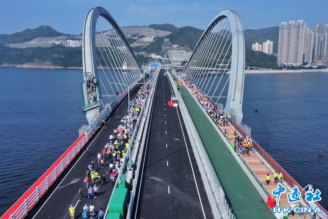 11月20日,香港公益金百萬行在即將啟用的將軍澳跨灣連接路舉行。這是疫情以來公益金百萬行首度恢復實體步行籌款,近15000名市民踴躍參加邁出慈善步伐,為公益金資助的家庭及兒童福利服務籌款。(香港中通社記者 許其皓攝)