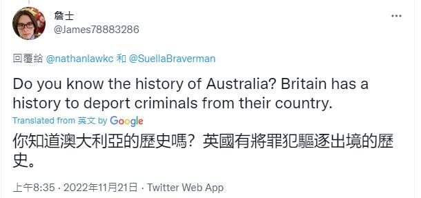 有網友還指出,“英國有將罪犯驅逐出境的歷史。”