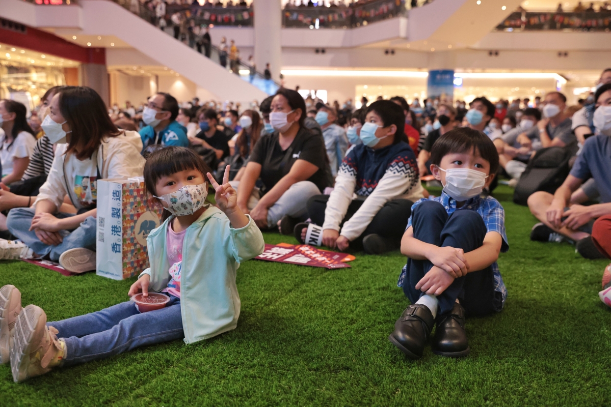 香港球迷在一商場觀戰加油