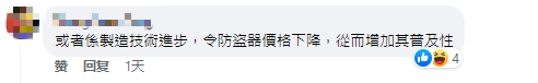 還有網友嘲諷:“說不定是因為製造技術進步令防盜器價格下降,從而增加其普及性。”