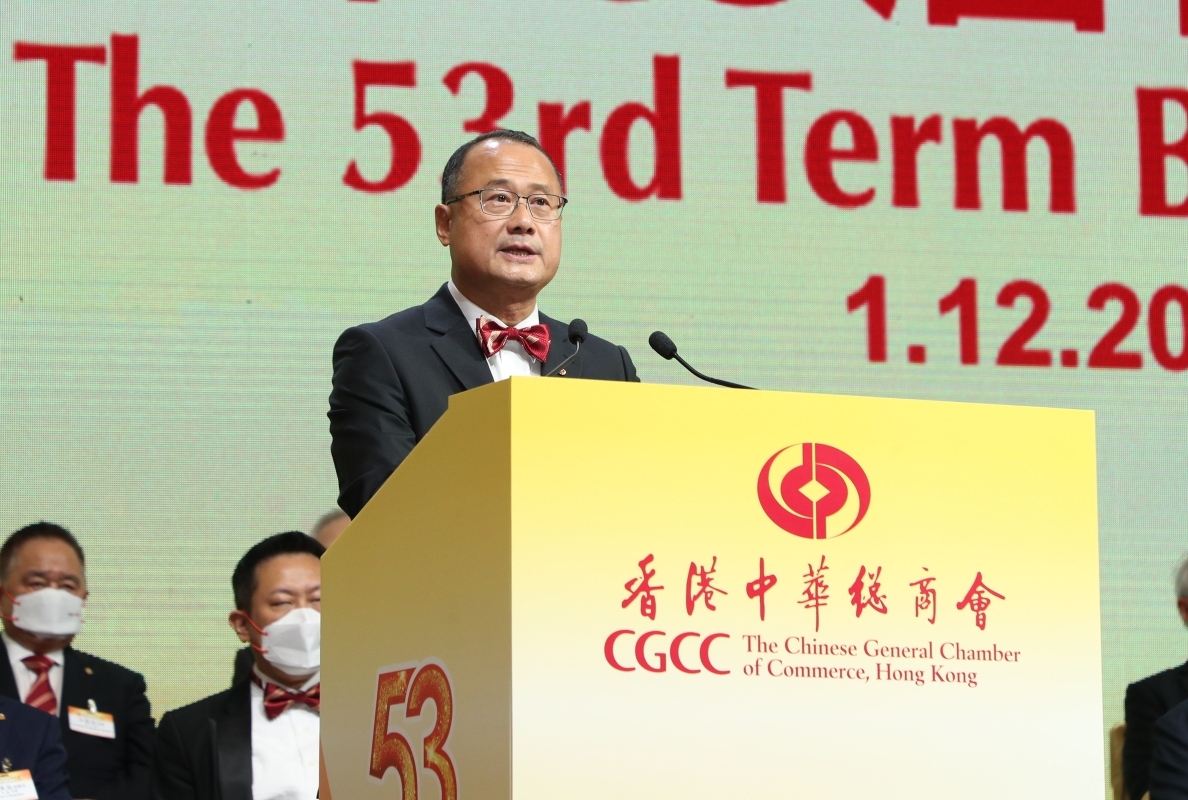 積極貢獻商會力量 蔡冠深致辭時表示,中國共產黨二十大開啟全面建設社會主義現代化國家的新征程,也給香港帶來了新機遇。作為“香港中總”,該會將積極推動工商產業發展,全力支持特區政府依法和有效施政,為增強香港發展動能,提升整體競爭力,貢獻商會力量。該會亦會協助會員深入瞭解內地政策,把握區域經濟發展帶來的商機,進一步提升作為“國家中總”的功能,為國家邁向現代化和高質量發展服務。 “中總將致力扮演‘世界中總’的角色,助力香港充分利用國際人脈網絡、熟悉環球經貿與法規等優勢,提升‘走出去、引進來’的成效。該會亦將透過舉辦大型論壇、組織海外與內地考察交流活動等,與各地建立更緊密聯繫,並全力協助香港特區早日加入RCEP、DEPA、CPTPP等高質量自貿協定,進一步提高香港國際化水平,助力大灣區發展,共同探索與東盟、RCEP以至‘一帶一路’聯接的巨大商機。” 蔡冠深說。