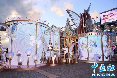 香港新聞網12月3日電(記者 曹文毓)聖誕節將至,香港海港城以“UniChristmas 我們的快樂聖誕”為主題,在海運大廈露天廣場打造獨角獸樂園,呈獻大樓梯的獨角獸宮殿和星燈打造的“天梯”。其中獨角獸和高達10米的幻彩閃亮聖誕樹受到市民喜愛,在幻彩燈光的效果下呈現日夜不同的美感,白天夜晚都有不少市民來打卡。