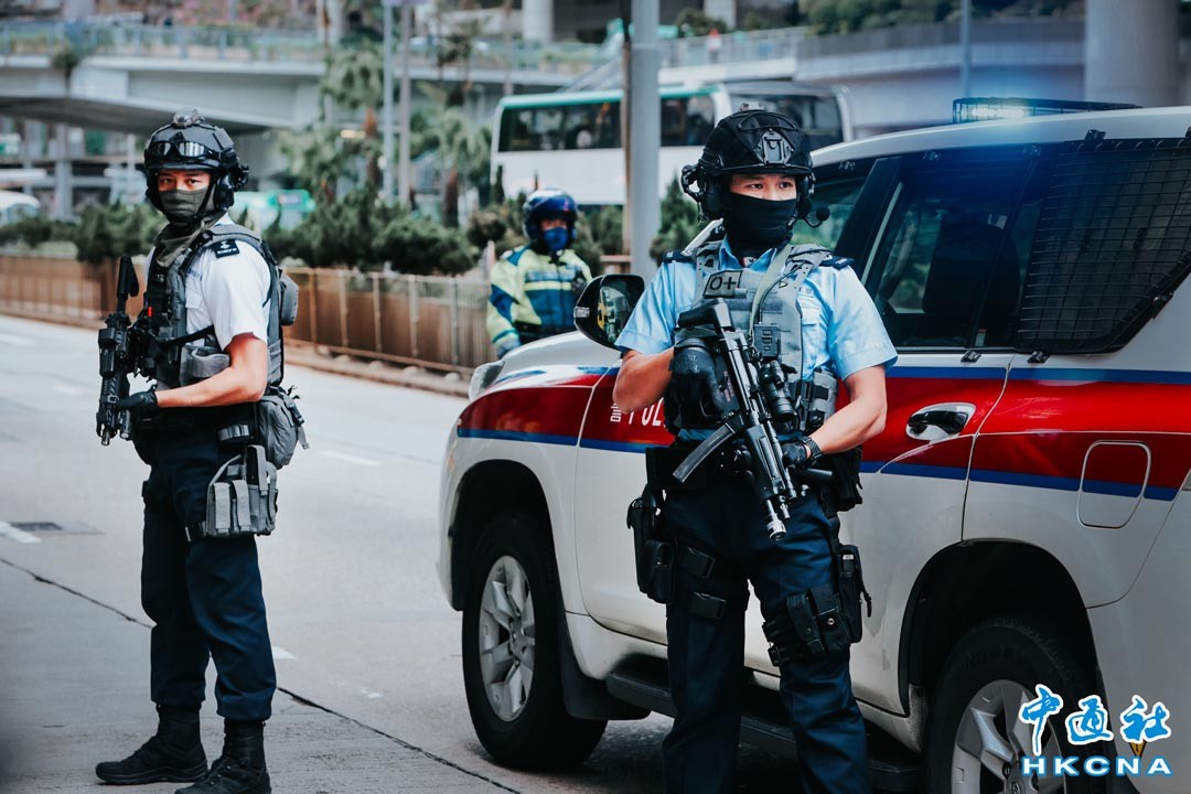 12月1日,香港高等法院批准,將壹傳媒創辦人黎智英涉嫌違反香港國安法等案件押後至12月13日再訊。圖為當日,押送黎智英的囚車駛入香港高等法院,大批警員持槍戒備。(香港中通社記者 謝光磊 攝)