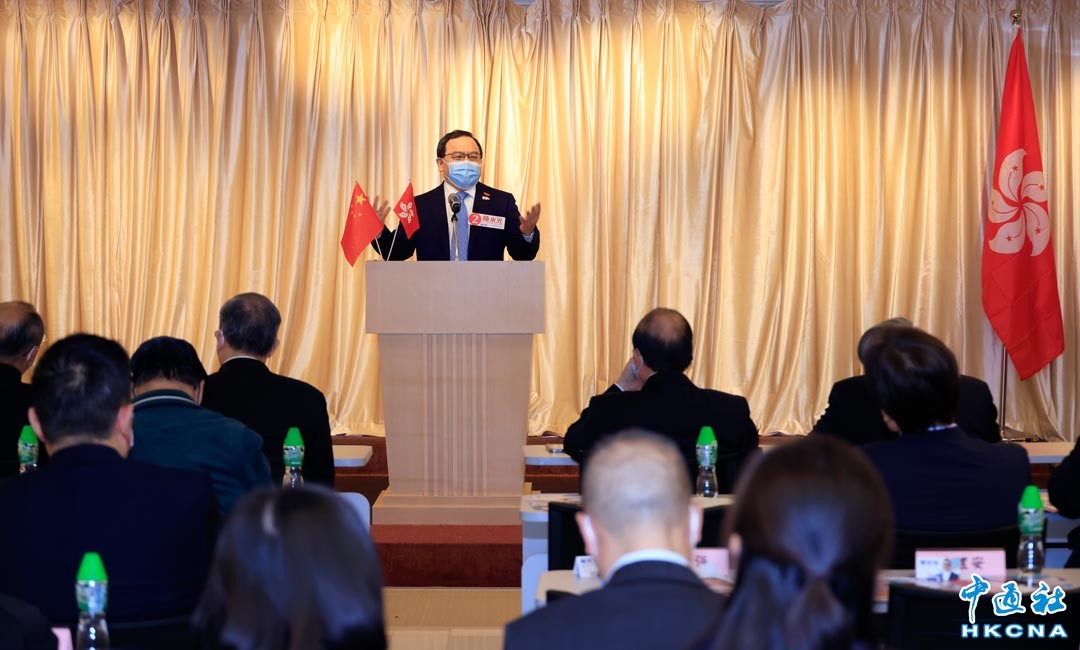 香港立法會選舉委員會(選委會)界別補選將於本月15日舉行,6名補選候選人於12月2日下午與同鄉社團界別、內地港人團體界別選委政見會面。大會安排每位候選人有5分鐘發言時間,作自我介紹及總結政綱。圖為香港註冊中醫學會會長陳永光。(香港中通社記者 曹文毓攝)