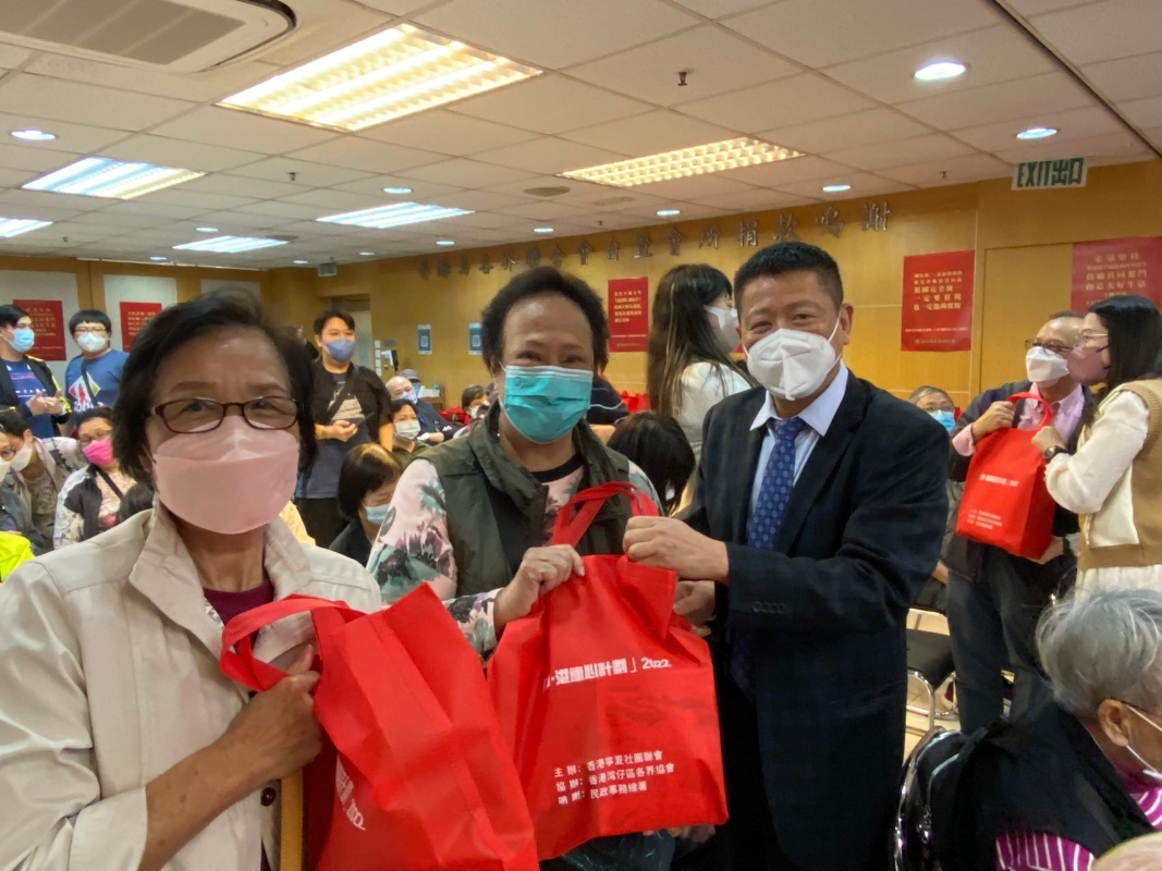 香港寧夏社團聯會“鄉‧港連心計劃2022基層關愛大行動”舉行啟動禮香港新聞網12月8日電 由香港寧夏社團聯會主辦,民政事務總署贊助,香港灣仔區各界協會、寧夏自治區駐港窗口中豪香港有限公司協辦的“鄉‧港連心計劃2022基層關愛大行動”,12月8日在上環舉行啟動禮。 “攜手齊抗疫,團結開新篇”是啟動禮的宗旨,在目前疫情依舊嚴峻的情況下,基層關愛行動更顯迫切性和必要性。本次活動獲得民政事務總署的大力支持和贊助,香港寧夏社團聯會會長閻偉寧、執行會長陸紀仁、常務副會長兼秘書長郭康平、副會長劉一君、香港中聯辦港島工作部副處長呂劍雲、署理灣仔民政事務專員湯穎怡、香港灣仔區各界協會副主席孫日孝、劉珮珊、佘靜怡等出席活動並為灣仔區低收入家庭及孤寡老人代表派發裝滿寧夏特色產品和抗疫物資的福袋。