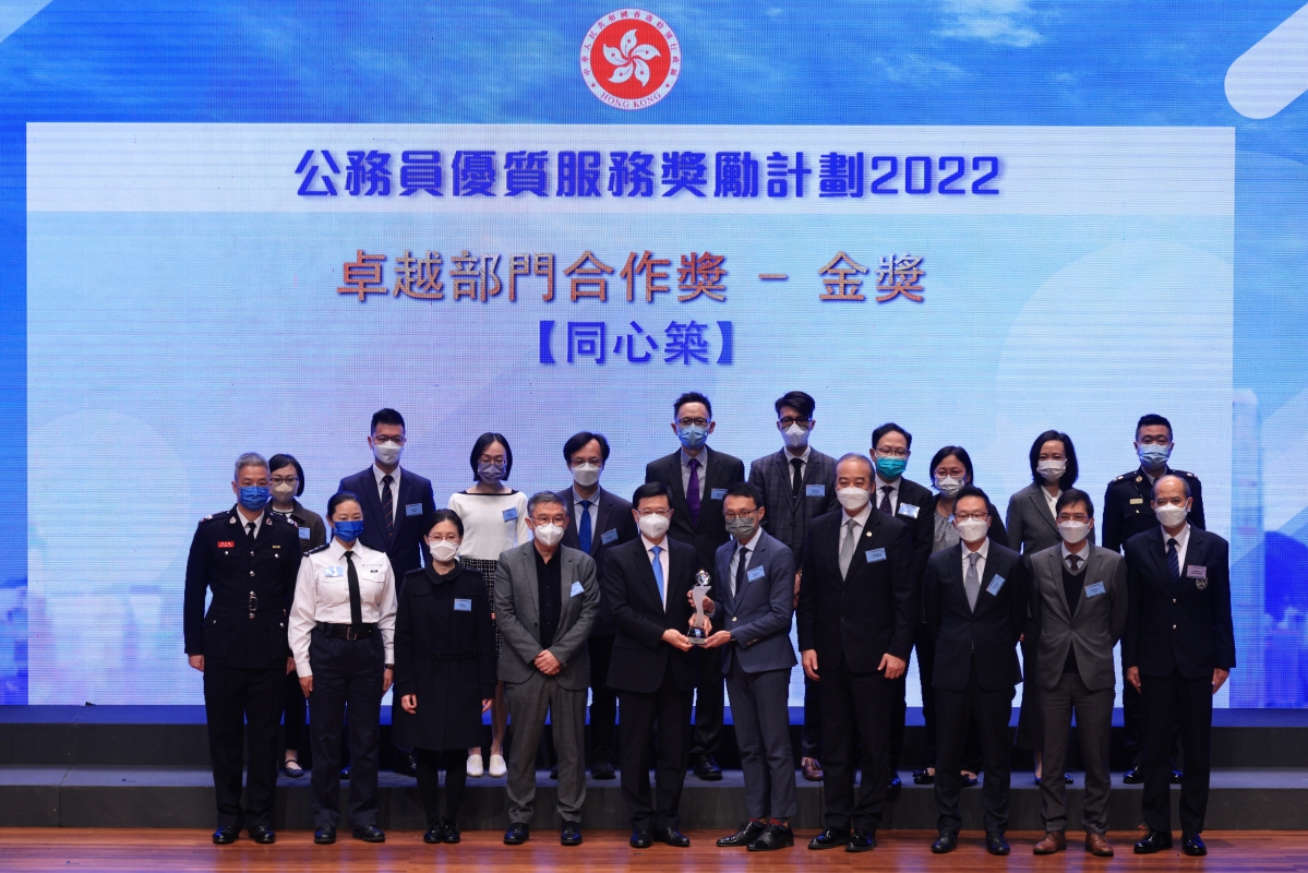 香港新聞網12月12日電(記者 許其皓)香港2022年公務員優質服務獎勵計劃頒獎典禮12月12日在香港會展中心舉行。香港特區政府公務員事務局每兩至三年舉辦一次公務員優質服務獎勵計劃,旨在表揚政府部門及團隊提供優質服務的卓越成就、推廣以民為本的文化、鼓勵團隊合作精神、激發創新意念以及讓部門和團隊分享和改善公共服務的經驗。本屆計劃中,共分為卓越部門合作獎、卓越部門精進服務獎、卓越團隊協作獎和創新及科技獎四類獎項。